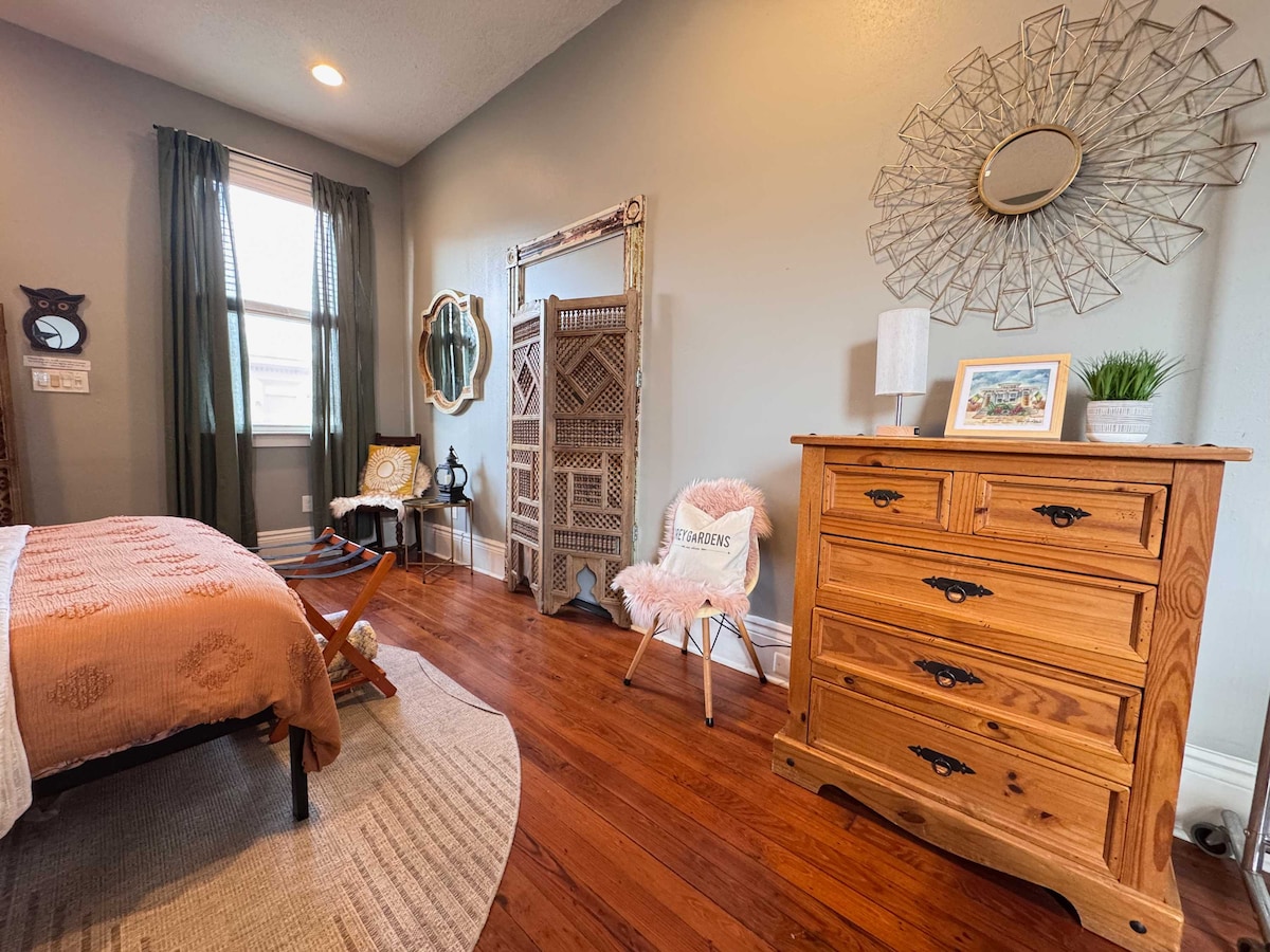 1856년에 복원된 크리올 코티지에서 유서 깊은 매력을 발산합니다. 나무가 늘어선 에스플러네이드 애비뉴 (Esplanade Avenue) 에서 불과 2블록 거리에 있는 트레메 (Tremé) 동네의 멋진 블록에 위치하고 있습니다. 앤티크 가구, 아름다운 뉴올리언스에서 영감을 받은 그림, 오리지널 원목 바닥이 있는 이 아늑한 전원주택에는 모든 것이 있습니다. 도보로 5분 거리에 있는 프렌치 쿼터에 도착하기 전에 대나무로 둘러싸인 뒤쪽 파티오에서 칵테일을 음미해보세요. 환영합니다!