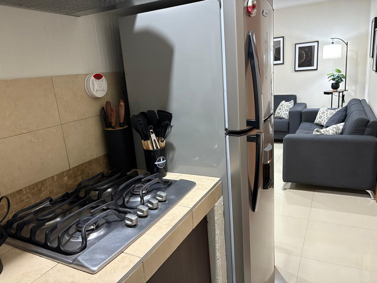 Descubre el confort y la conveniencia en nuestro moderno departamento para dos personas, situado en el centro de Fresnillo. Este encantador espacio está diseñado para ofrecerte una estancia cómoda y placentera. Disfruta de una habitación privada, un baño equipado, una cocina completa y una sala de estar ideal para relajarte. Con acceso a todas las atracciones locales a pocos pasos, perfecto para viajes cortos de trabajo, nuestro departamento es tu hogar lejos de casa.