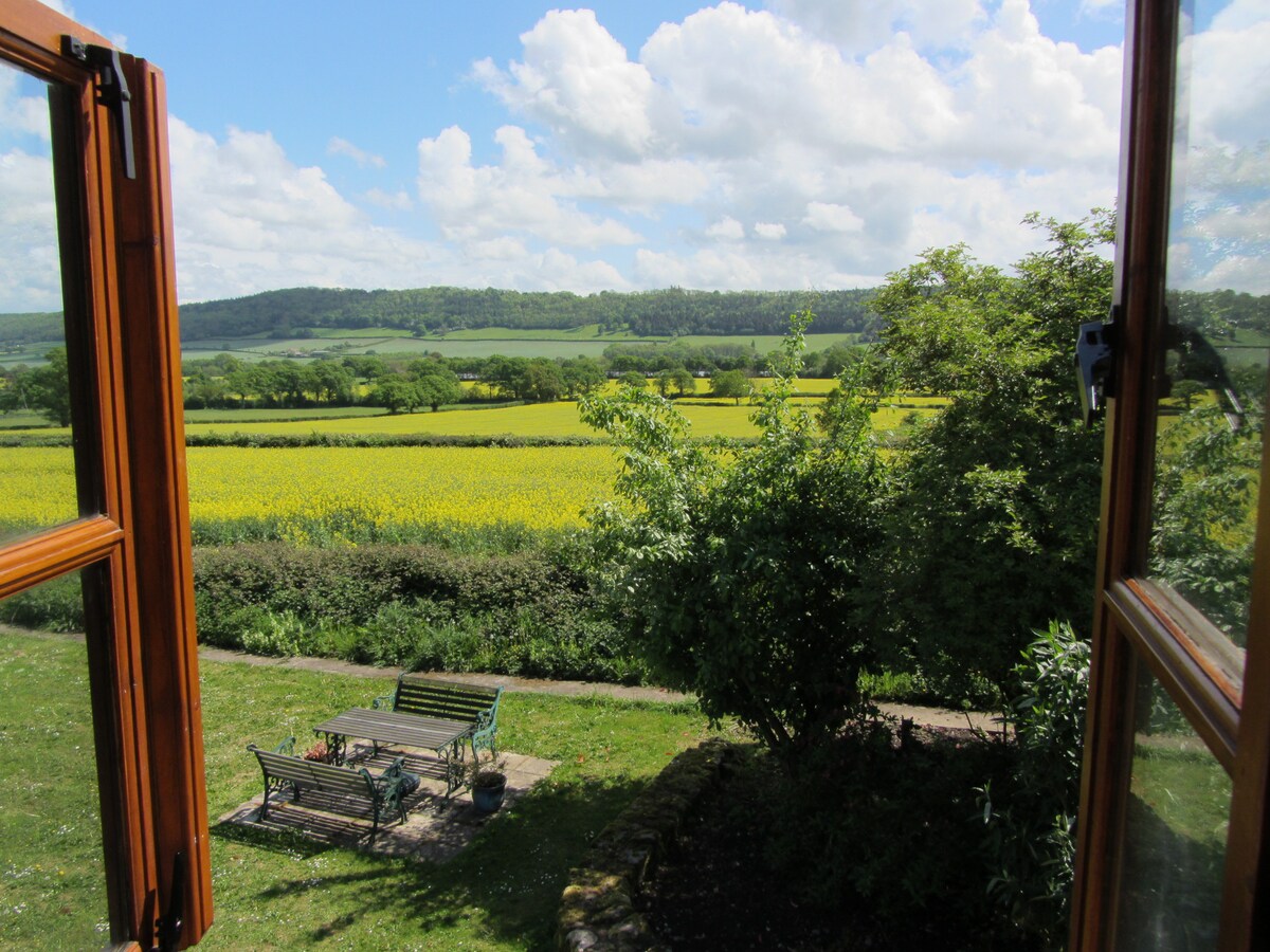 쾌적한 시골 지역에 평화롭게 자리 잡은 이 매력적인 석조 전원주택은 노출된 대들보, 시대적 특징, 장작불이 풍부하며 매우 편안하고 넓은 숙박 시설을 제공합니다. 정원은 아름다운 슈로프셔 시골 지역이 내려다보이는 테라스 공간을 포함하고 있으며, 숙소 바로 앞에서 멋진 시골 산책을 즐길 수 있습니다. 낭만적인 주말을 보내기에 아름다운 장소입니다. 커플에게 이상적입니다.