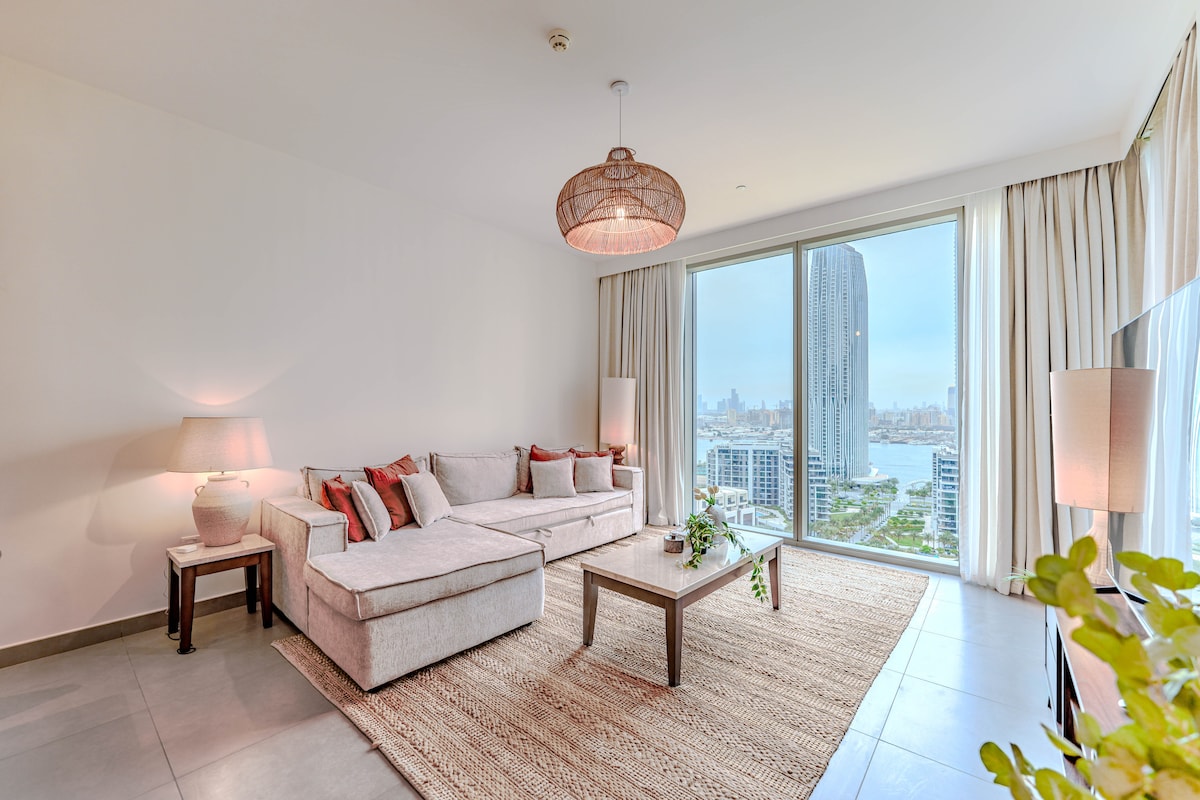 두바이에서 가장 아름다운 곳에 위치한 2BR 아파트에서 호화로운 시간을 보내세요. 부르즈 할리파 시내 풍경과 크리크 바다 전망을 자랑합니다. 평화롭고 우아한 숙소에서 휴식을 취하고 긴장을 풀어보세요. 인피니티 풀, 헬스장, 어린이 놀이 공간, 어린이 수영장, 다목적 홀, 배드민턴 코트, 테니스 코트 등 최고급 건물 편의 시설을 이용하세요. 부르즈 칼리파, 두바이 몰, SHZ까지☑️ 10분 두바이 공항까지☑️ 14분 야생동물 보호구역까지☑️ 10분 팜 주메이라까지☑️ 18분