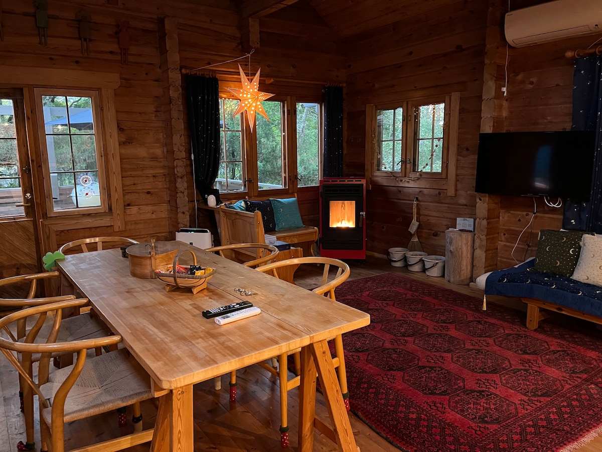 화덕을 둘러앉을 수 있는 핀란드산 로그하우스