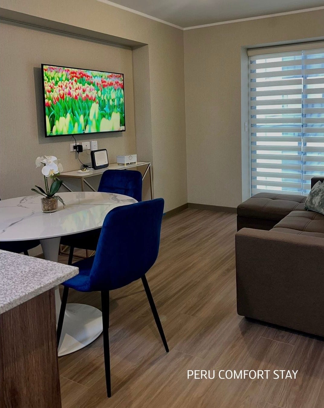 페루 리마의 주요 도로의 전략적인 지역에 위치한 완비된 완전한 최신식 아파트입니다. 건물 내 공용 공간이 있어 숙박을 독특한 경험으로 만들어 드립니다. 게스트에게 따뜻하고 아늑한 공간을 제공하고, 일몰과 도시의 아름다움을 즐길 수 있는 뛰어난 파노라마 전망을 제공하기 위해 만들어졌습니다.