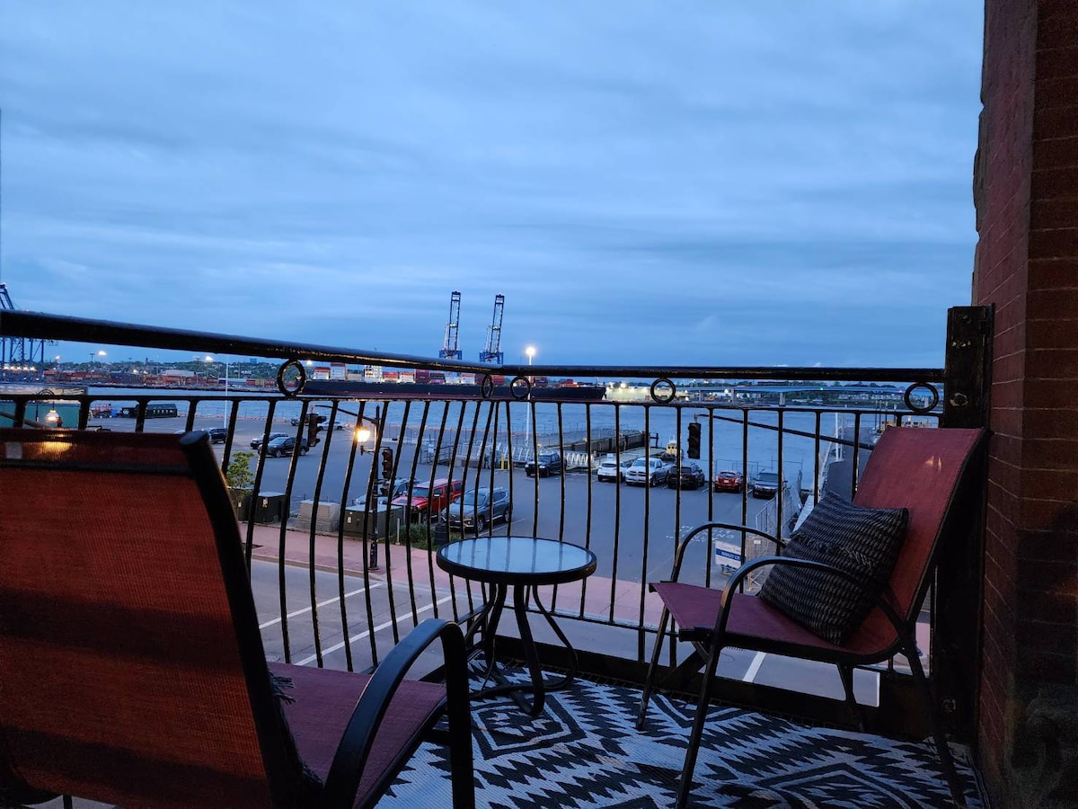 유명한 문화유산 건물에 위치한 크고 현대적인 바다 전망의 2층 스튜디오 플랫! 세인트존 업타운 나이트라이프와 레스토랑 지구의 중심에 위치한 독특한 플랫입니다. 활동의 중심에 있고 싶은 게스트에게 안성맞춤입니다. 유서 깊은 바닥에서 천장까지 이어지는 창문과 전용 발코니에서 세인트 존 항구의 아름다운 전망을 감상하세요! 고품질의 침구가 마음에 드실 겁니다. 토마스 펄롱 빌딩을 검색하여 세인트 존 랜드마크의 역사에 대해 자세히 알아보세요!