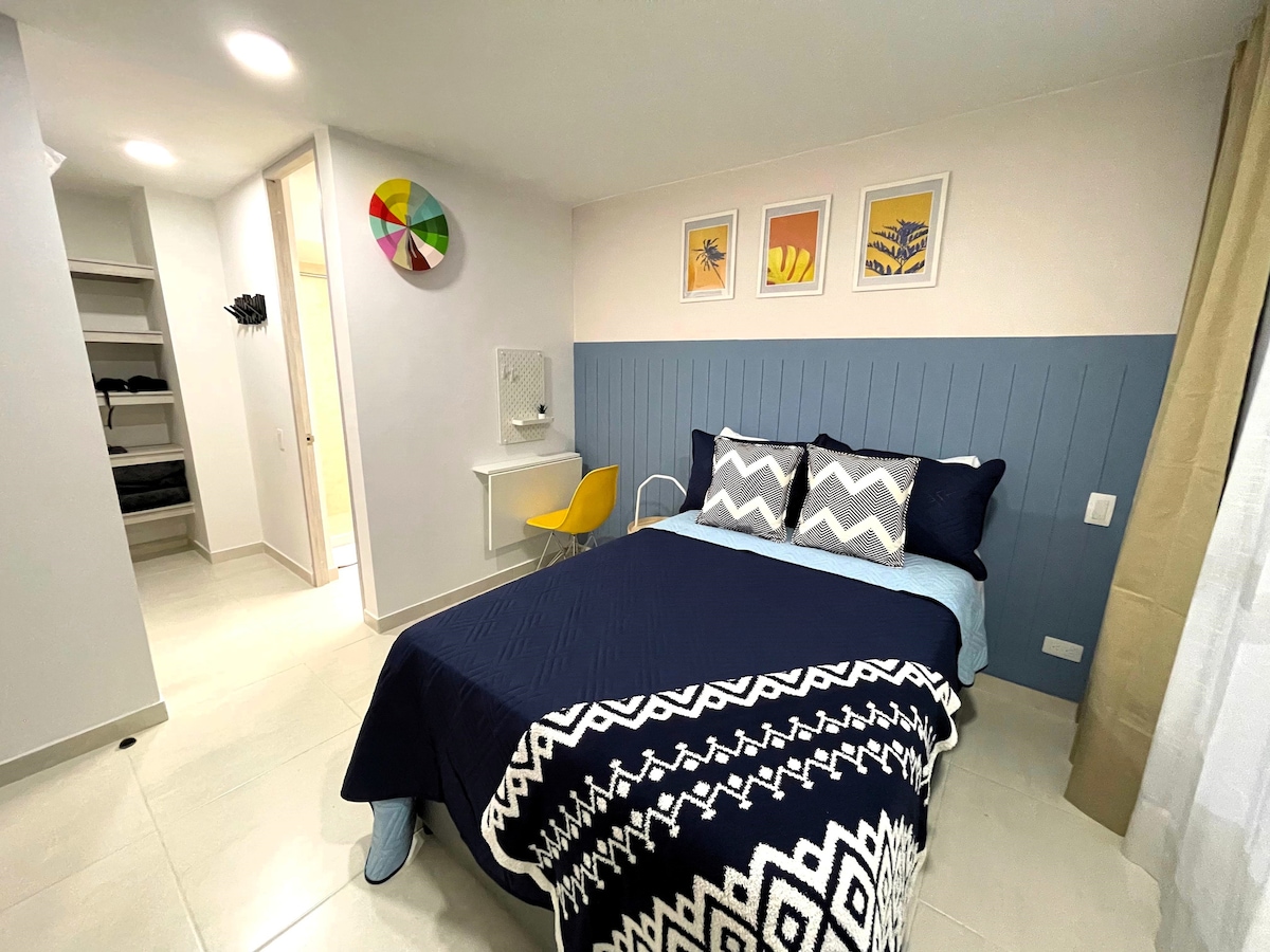 Apartamento en primer piso, habitación principal con cama matrimonial con sus respectivos tendidos y baño privado, habitación pequeña con cama sencilla con sus respectivos tendidos, baño en el pasillo y un sofacama doble en la sala, cocina tipo americano con todo lo que necesita, servicio de Wifi. Tv en alcoba principal y sala. El conjunto cuenta con piscina, gym, parqueadero propio. Lugar tranquilo. Estamos al lado de la glorieta del indio. No se aceptan mascotas. No hay servicio de toallas.