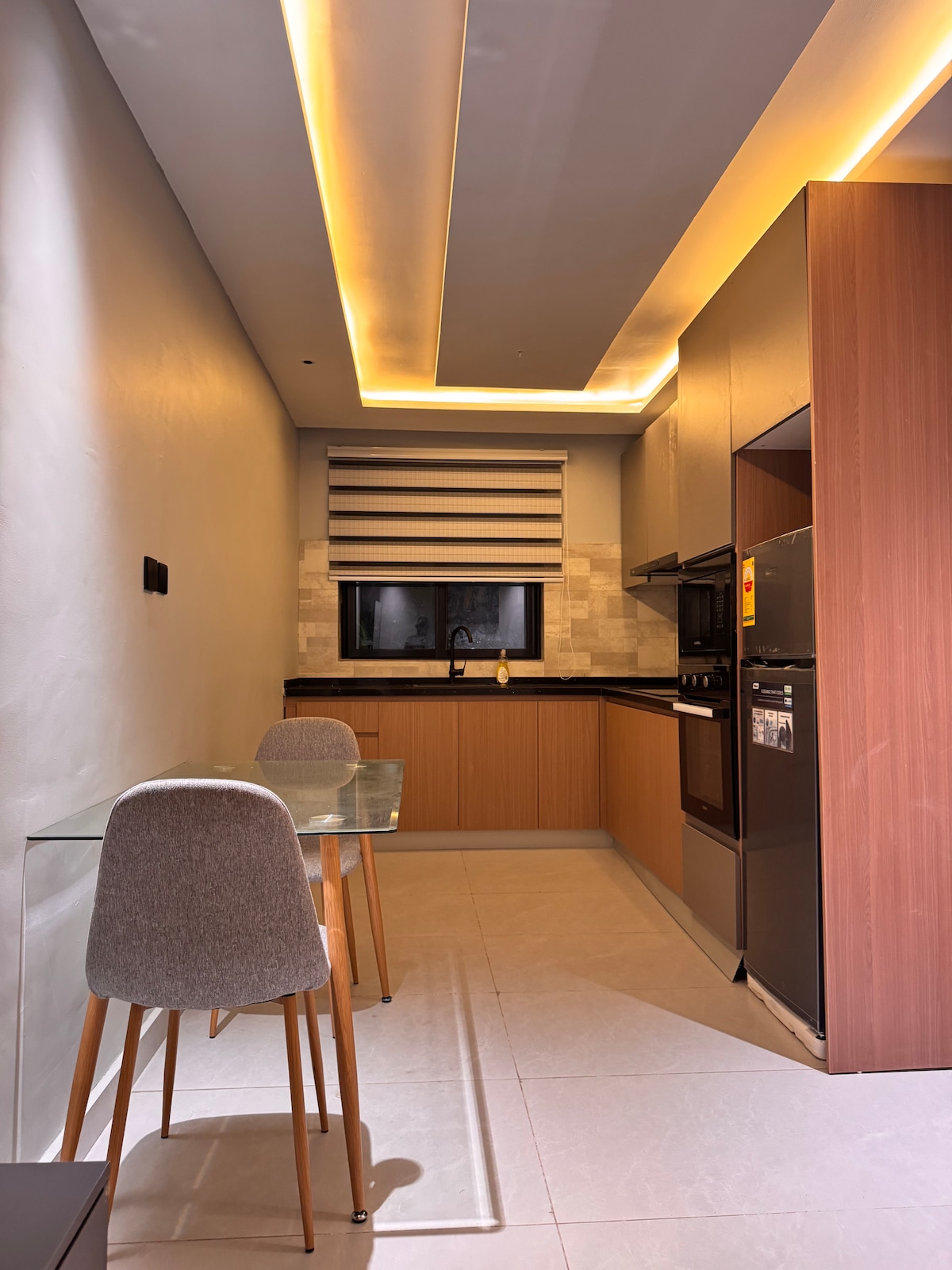 Grand suit is a 3bedroom in a gated community with 24hr security guards, CCTV surveillance and barb wire. Grand Vista is fitted with modern home appliances, Kitchen appliances amenities that make life comfortable. The living area is fitted with 80" TV set, aesthetically appealing but comfortable Sofa, well laid out dinning and bar area. The back yard offers outdoor furniture for family relaxation and dining. Tha balcony is fitted with Automatic retractable awning, fully LED.