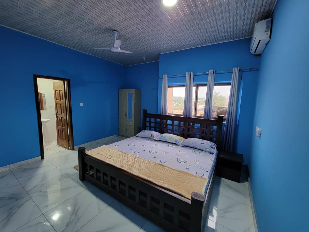 unique and tranquil getaway 2 bedroom 2 king size bed with living room ,2 toilet and bath kitchen,wifi,fully air-conditioned fully furnished.Free parking within premises,walled security fencing and security cameras. 2 minutes away from Afrakoma Hospital,stadium north Police post and Gym,pub&restaurant ,car rental,stadium&laundry 30 minutes drive from kotoka international airport,10 minutes drive from Achimota mall and recreational centre 2 minutes drive from China Mall and N6 Accra nsawam rd.
