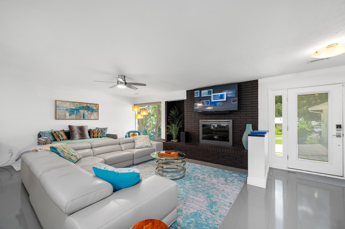 완벽한 게인즈빌에 오신 것을 환영합니다! 이 멋진 침실 3개, 욕실 2개 숙소는 UF 스타디움에서 불과 몇 분 거리에 있는 중심부에 위치해 있습니다. 서로 연결된 공간을 공유하는 공간으로, 별도의 문이 없습니다. 미드 센추리 모던 디자인, 열대 플로리다의 매력, 세련된 게이터에서 영감을 받은 악센트가 매끄럽게 어우러져 어떤 경우에도 독특하고 편안한 숙박을 제공합니다. 또한, 테슬라 충전기와 같은 현대적인 편의 시설을 즐길 수 있어 환경을 생각하는 여행객에게 안성맞춤입니다.
