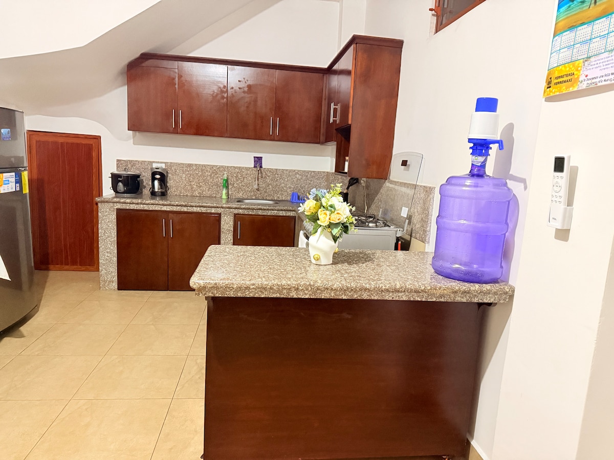 푸에르토 아요라의 주거 지역에 위치한 아름다운 아파트에서 갈라파고스 휴가를 즐기십시오. 나무와 흰색을 조합한 독특한 스타일의 아파트로 편안한 객실에는 TV, 에어컨, 전용 욕실이 갖춰져 있습니다. 또한 넓은 테라스 덕분에 잊지 못할 추억을 만들어 드릴 것입니다.