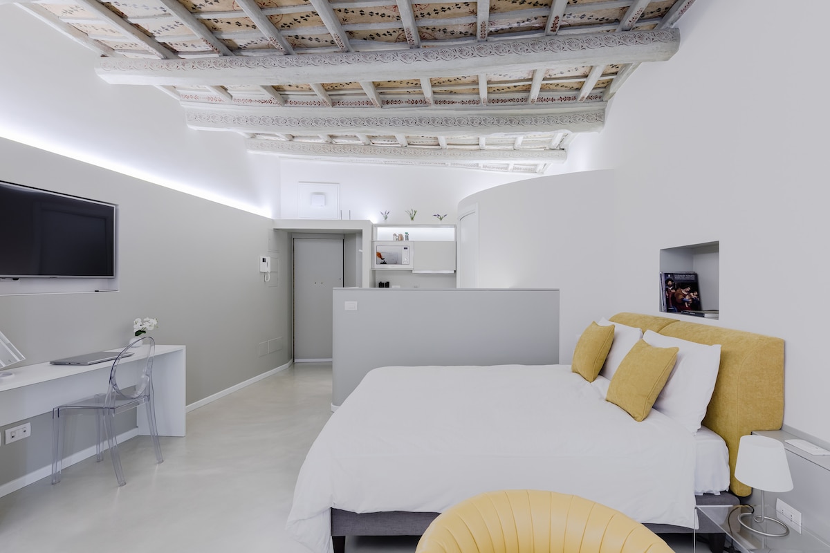 이른 아침 산책을 즐기고 관광객이 없는 트레비 분수를 즐겨보세요. 도시가 잠들어 있는 동안 역사적인 거리를 거닐다가, 로프트 침대가 있는 세련된 도심 속 스튜디오로 돌아와 모닝 커피를 즐겨보세요. 멋진 디자이너 로프트는 로마 중심부의 교통이 통제된 매우 조용한 거리에 있습니다. 게스트는 로프트 전체를 마음껏 이용할 수 있습니다. 유적지, 레스토랑, 상점, 대중교통 등 다양한 명소까지 도보로 이동할 수 있습니다.