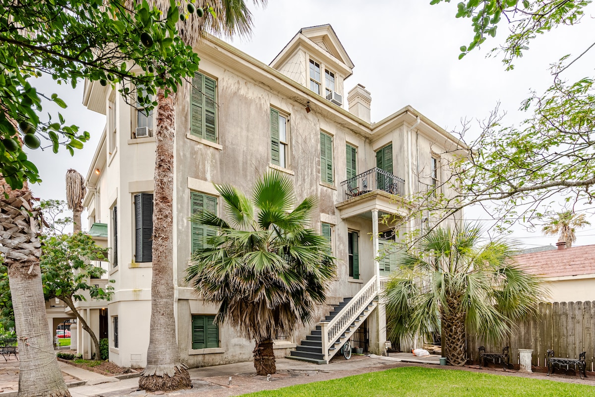 First of its kind in the downtown historical area of Galveston. Walk 40 yards to the best restaurants and bars where the locals go. Memory foam mattress, luxurious linens, mini fridge, microwave, with the coolest outdoor area in town. Free off road designated parking. Enjoy the glamour of this stylish, upscale place one mile from the ocean. Private bedroom and bath with secure private entrance into the 10 room boutique hotel.