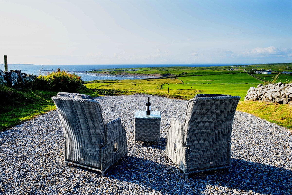 This beautifully designed and refurbished coastal retreat is all about its stunning location and panoramic views of the Atlantic ocean, Doolin, the Aran Islands, and across to the twelve pins of Connemara. Perfectly located to explore the rugged Wild Atlantic way of County Clare and a gateway to the iconic Burren National Park, voted the number 1 visitor location in Ireland, not to mention the nearby breathtaking Cliffs of Moher known to many as the 8th wonder of the world!