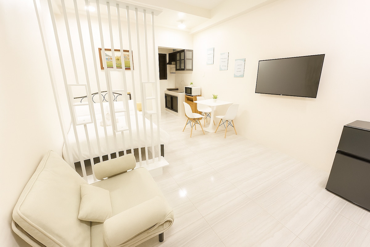 Address: Blk. 3 Lot 3 Magneth Building, Sumacab Este Magneth Building is a 3-storey apartment building near NEUST Sumacab (1-2 mins. walk, 150m), NE Pacific Mall (5 mins. drive, 1.8 km), NE Doctor’s Hospital (4 mins. drive, 1.7 km) & SM Cabanatuan (8 mins. drive, 2.9 km). Minimalist Studio Apartment is one of the two rooms we renovated out of the 24 rooms in the building to offer nightly stays for Airbnb guests. The other room is named Modern Tropical Studio Apartment here in Airbnb.