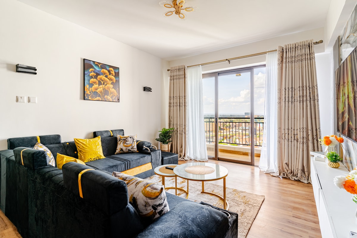 미비다 홈즈의 현대적인 2베드룸 아파트, 가든 시티 몰 – 7번 출구 티카 로드. 수영장, 헬스장, 놀이터, 녹색 조경 정원을 이용할 수 있는 평화롭고 가족 친화적인 숙박을 즐겨보세요. 멋진 파노라마 도시 전망을 자랑하는 세련된 아파트입니다. 낮에는 아름답고 밤에는 멋진 조명이 켜집니다. 주차장과 24시간 모니터링을 갖춘 안전한 숙소. 나이로비 CBD 및 JKIA 공항과 가깝습니다. 출장, 휴가 또는 장기 숙박에 이상적입니다. 편안함, 편리함, 스타일이 한데 어우러진 조용한 위치에 있습니다.