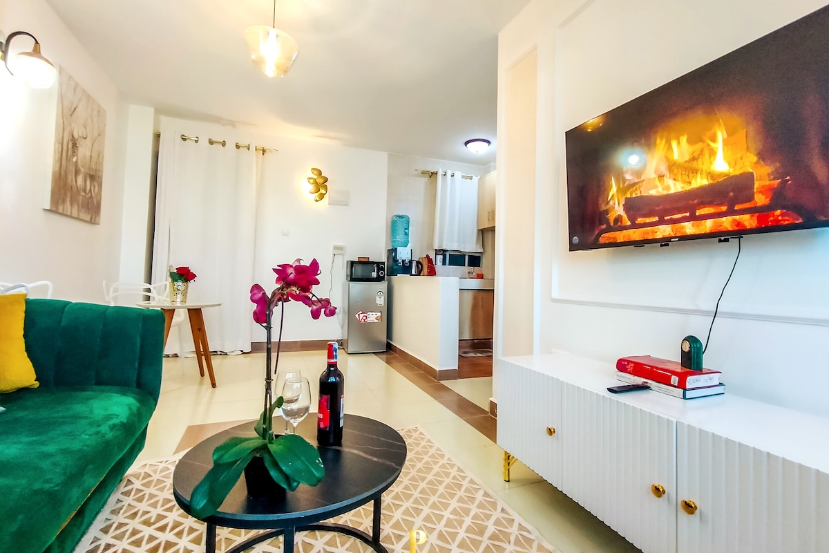 Our peaceful and unique one-bedroom apartment is modern and stylish, and it is located at Mi Vida Homes - Garden City Mall, off Exit 7 Thika Road. Mi Vida is a perfectly serene place to stay while on vacation, working, or as a home, with well-manicured green spaces and colorful landscaped flower gardens. The swimming pool and fully equipped gym help you keep fit and relax, with an outdoor rooftop patio to unwind or hold a barbecue. It offers easy access to the Nairobi CBD and the JKIA airport.