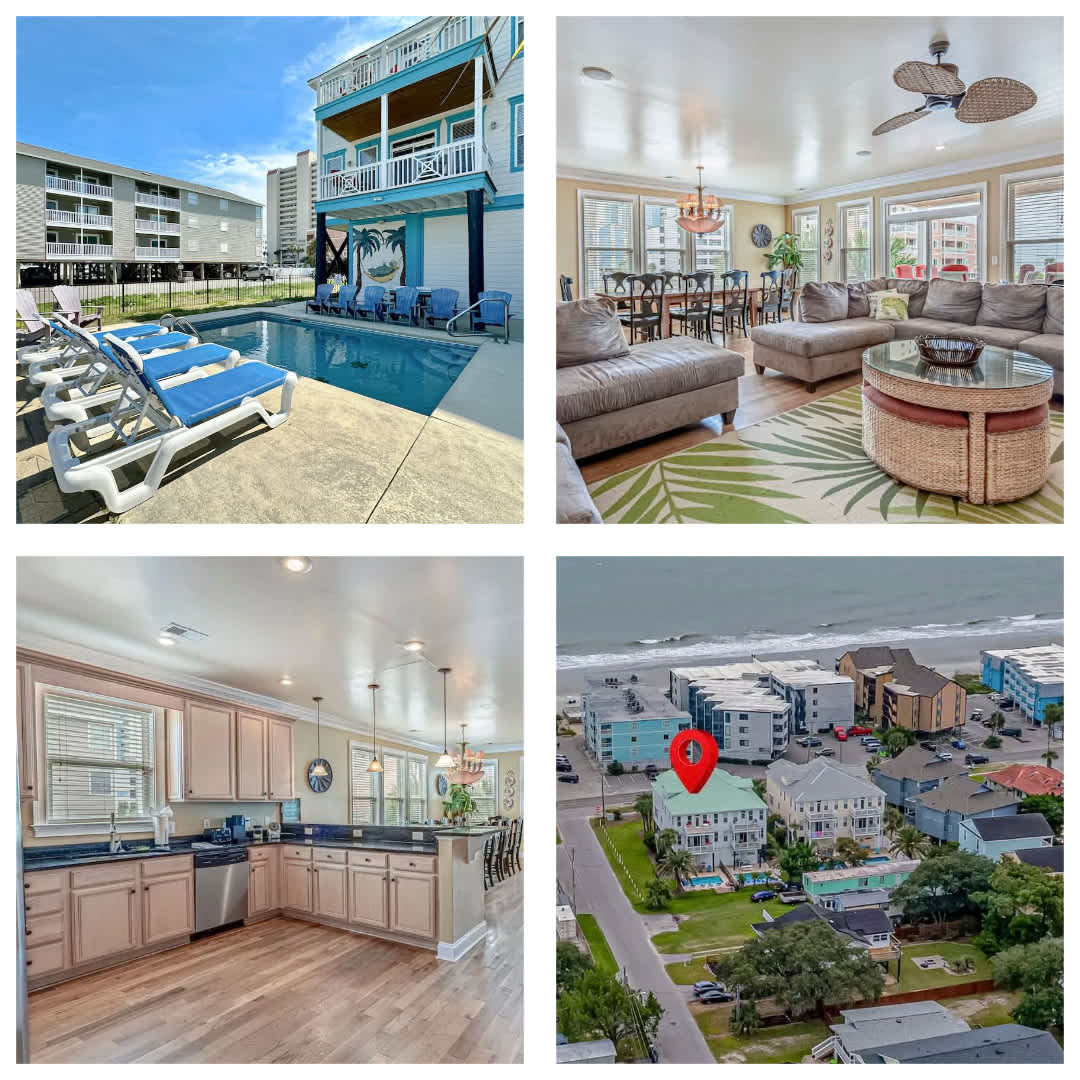 This 2-bedroom Murrells Inlet vacation rental is a charming beach cottage just steps from the shoreline, featuring a private pool, open-concept living, and easy access to the beach, dining, and local attractions.