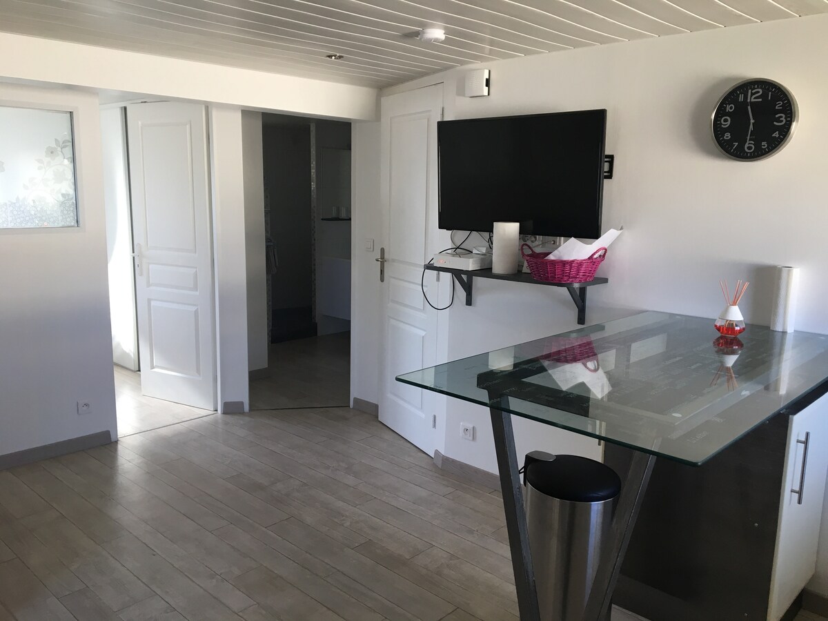 Confortable studio 2/3 personnes en rez de jardin.