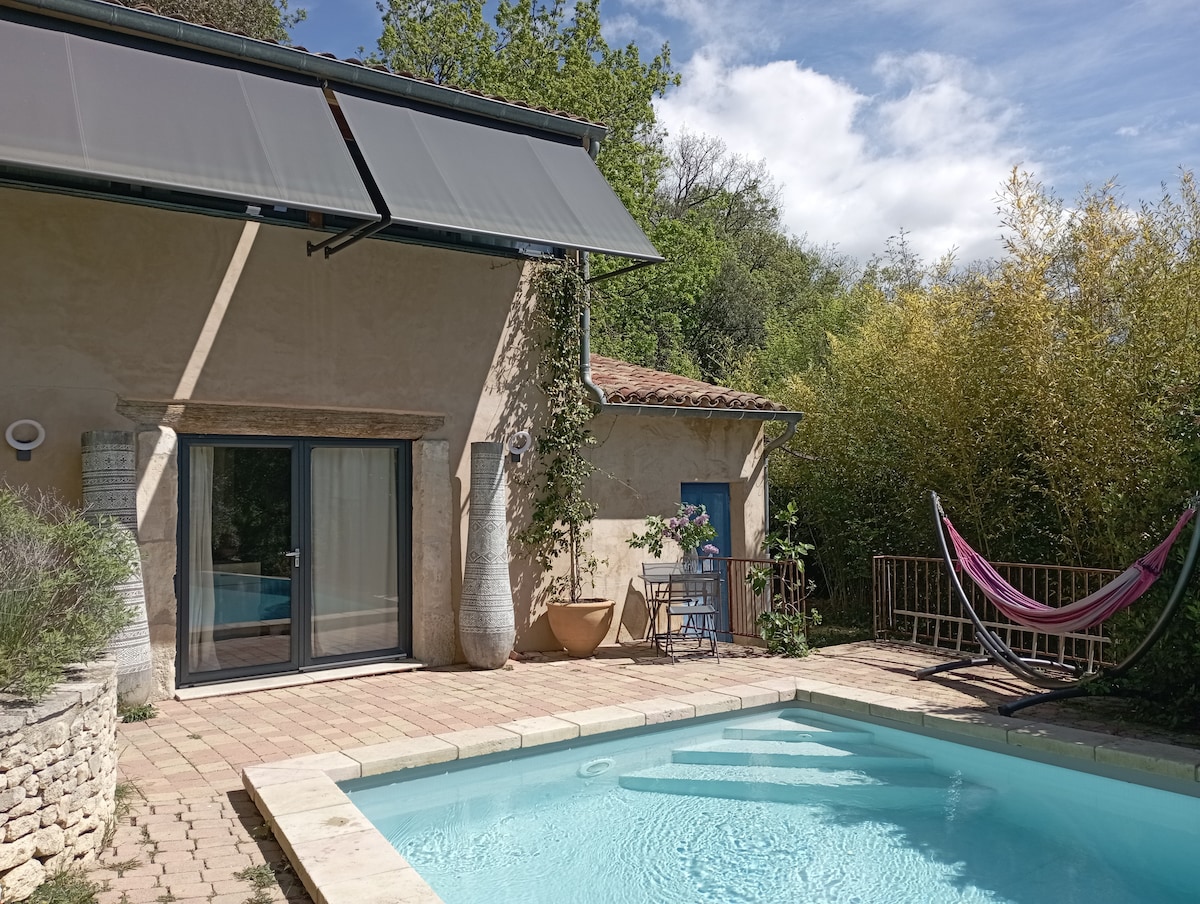 logement de 50m2 situé entre Apt & Roussillon dans le parc du Luberon, en pleine campagne sur 2 h de terrain,avec piscine naturelle Attenant à notre maison, entrée indépendante. Composé au rdc d'une pièce à vivre lumineuse donnant sur la terrasse vue sur le moulin de Salignan avec cuisine équipée,sdb,WC(a savoir, sdb WC sont cloisonnés par une verrière pouvant gêner les plus pudique A l'étage 1 chambre spacieuse avec un lit en 160 et 2 en 90. Ext avec terrasse donnant sur garrigue et Ventoux