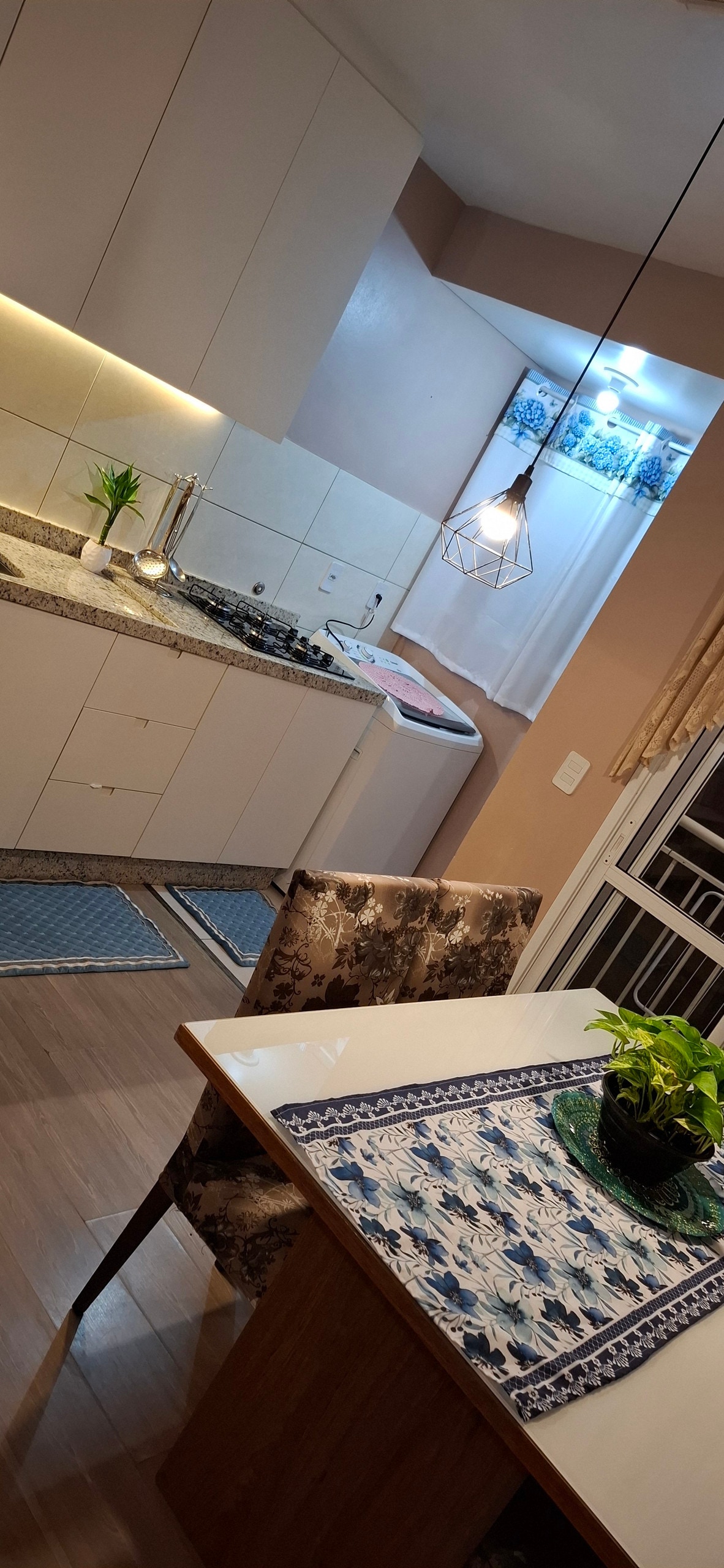 apartamento tranquilo todo imobiliado.. ap após a garagem fica no terceiro último andar escadas curtas,não tem elevador. não possui ar condicionado somente aquecedor. possui lençol,fronha cobertas. mas não possui sobre lençol. possui toalhas de banho. possui cafeteira,air fryer.. está como tá nas fotos..