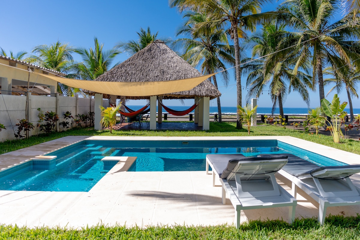 순수한 휴식을 위한 넓은 코코넛 숲 속의 해변 럭셔리 숙소! 휴식을 위한 해먹, 화학 물질이 없는 수영장, 수 마일의 빈 해변, 하우스키핑, 요리 교육을 받은 요리사가 포함되어 있습니다. 이 독특한 숙소에서 가장 편안한 휴가를 보내실 수 있도록 모든 디테일에 주의를 기울이세요. 바라 데 산티아고 지역은 엘살바도르에서 가장 아름다운 곳 중 하나로, 수 마일의 보호된 맹그로브와 작은 어촌 마을을 포함합니다. 참고: 최대 8명까지 기본 요금, 요금에 대한 게스트 수를 입력하세요.