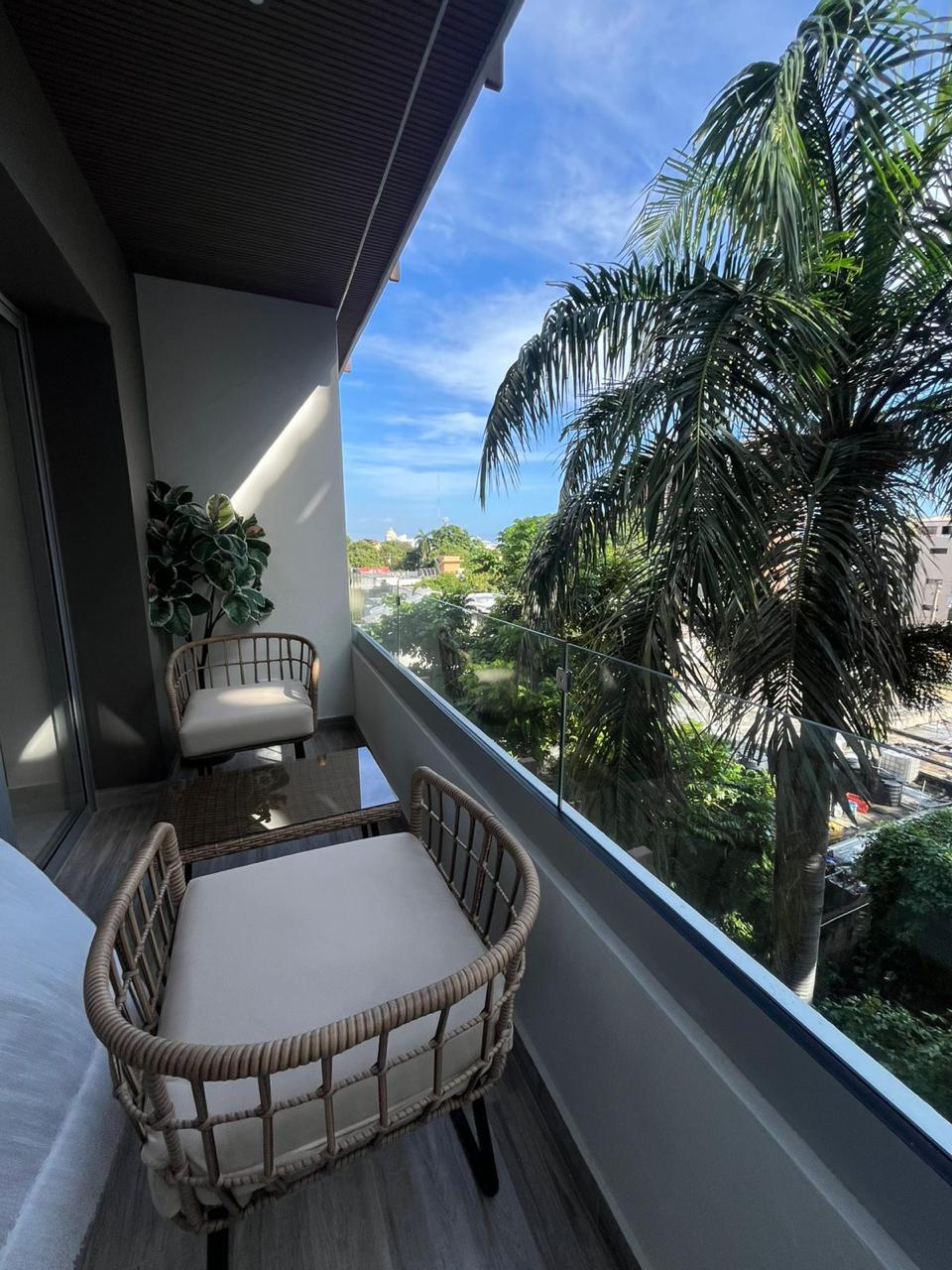 **호스트는 유창한 영어/스페인어를 구사합니다** 넓고 밝은 분위기/커다란 창문 엘리베이터가 있는 4층 예비 전원 온수기 무료 주차 연중무휴 보안 전용 욕실이 있는 침실 1개 편안한 퀸사이즈 침대/베개/수건 화장실 조리도구가 구비된 주방. 밝고 넓은 거실 발코니 에어컨 TV 침실/거실 와이파이 전자레인지 다리미/다리미판 금고 업무용 책상 전자 키리스 엔트리 작은 수영장이 있는 옥상 이용(공용) 무료 손 세정제/바디 워시