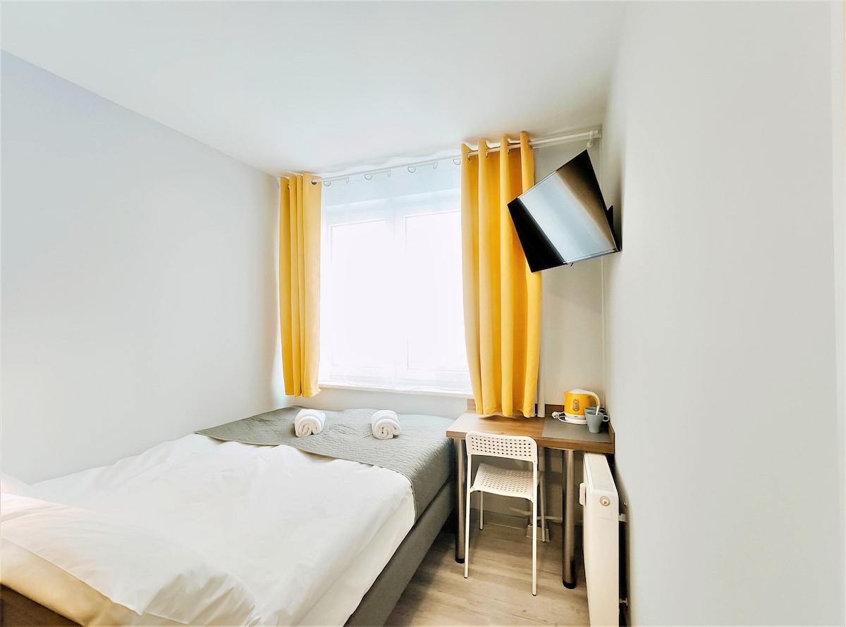 Przestronny pokój 2-osobowy, z możliwością dostawienia dodatkowego łóżka. Pokój wyposażony jest w wygodne łóżko podwójne o szerokości 180 cm lub 200 cm z możliwością rozstawiania na dwa łóżka pojedyncze, łazienkę z kabiną prysznicową, mini lodówkę oraz zestaw do kawy i herbaty. Okna z szybami o podwyższonej izolacji akustycznej zapewniają naszym gościom komfortowy wypoczynek. System klimatyzacji z poczwórnym filtrem plazmowym skutecznie zatrzymuje wirusy i bakterie.
