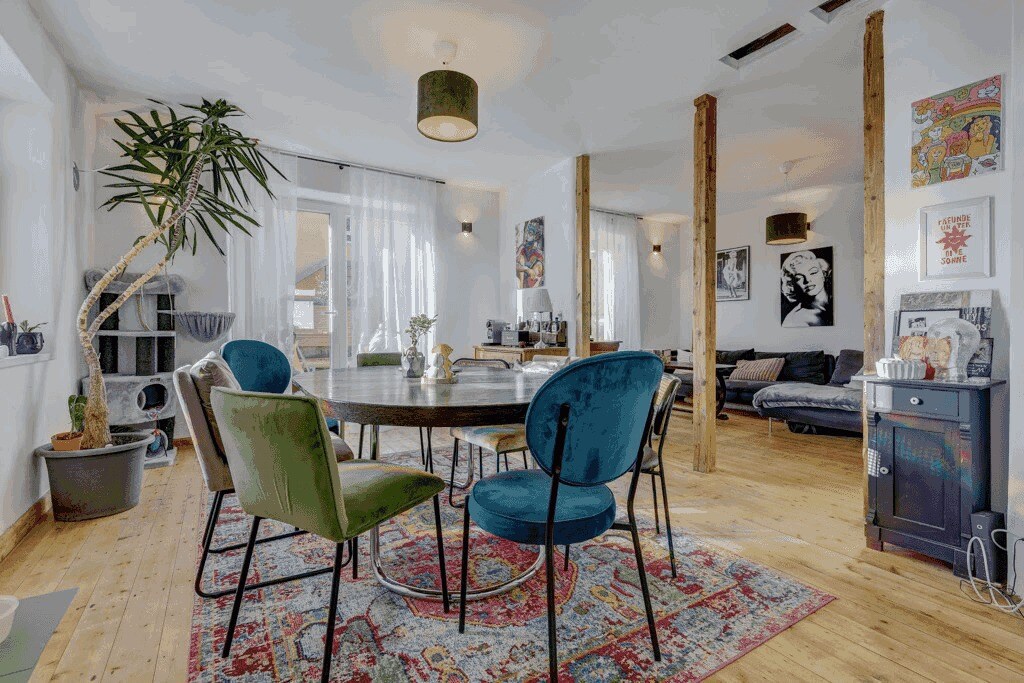 Liebevoll rennoviertes Jugendstil Haus mit grossem Garten, Terasse und Grillplatz. Das Ferienhaus mit 3 Schlafzimmern bietet Platz für bis zu 6 Erwachsene. Auf Anfrage können zusaetzlich Kinderbetten gestellt werden. Das 2022 komplett sanierte Haus verfügt über einen idyllischen 1.200 m2 großen Garten, einen gepflasterten Innenhof mit Parkmöglichkeiten und Elektroladestation. Zum Frühstück werden Sie von unseren glücklichen Hühnern mit frischen Eiern versorgt.