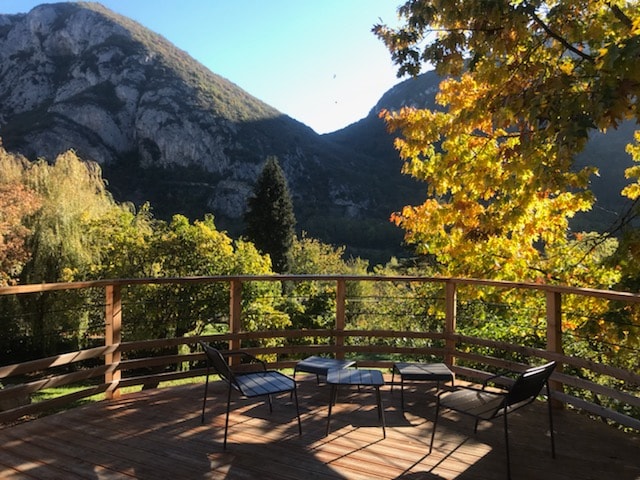 밝은 숙소, 테라스 및 산 전망