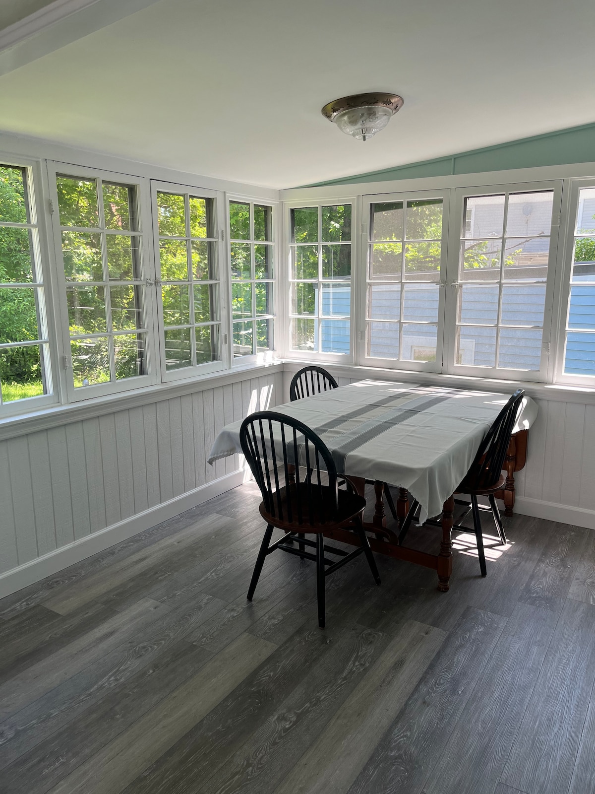 Welcome to a timeless retreat by the water - a century-old home that marries modern comfort with historic allure. The house boasts an abundance of original charm, featuring wood paneling, beams adorning the ceiling, and the original hardwood floor. The light and airy kitchen include quartz countertops, new cabinets, appliances, and luxury vinyl plank flooring. The spacious bedrooms, living area, and dining room are caressed by daylight, creating an ambiance that is both uplifting and soothing.
