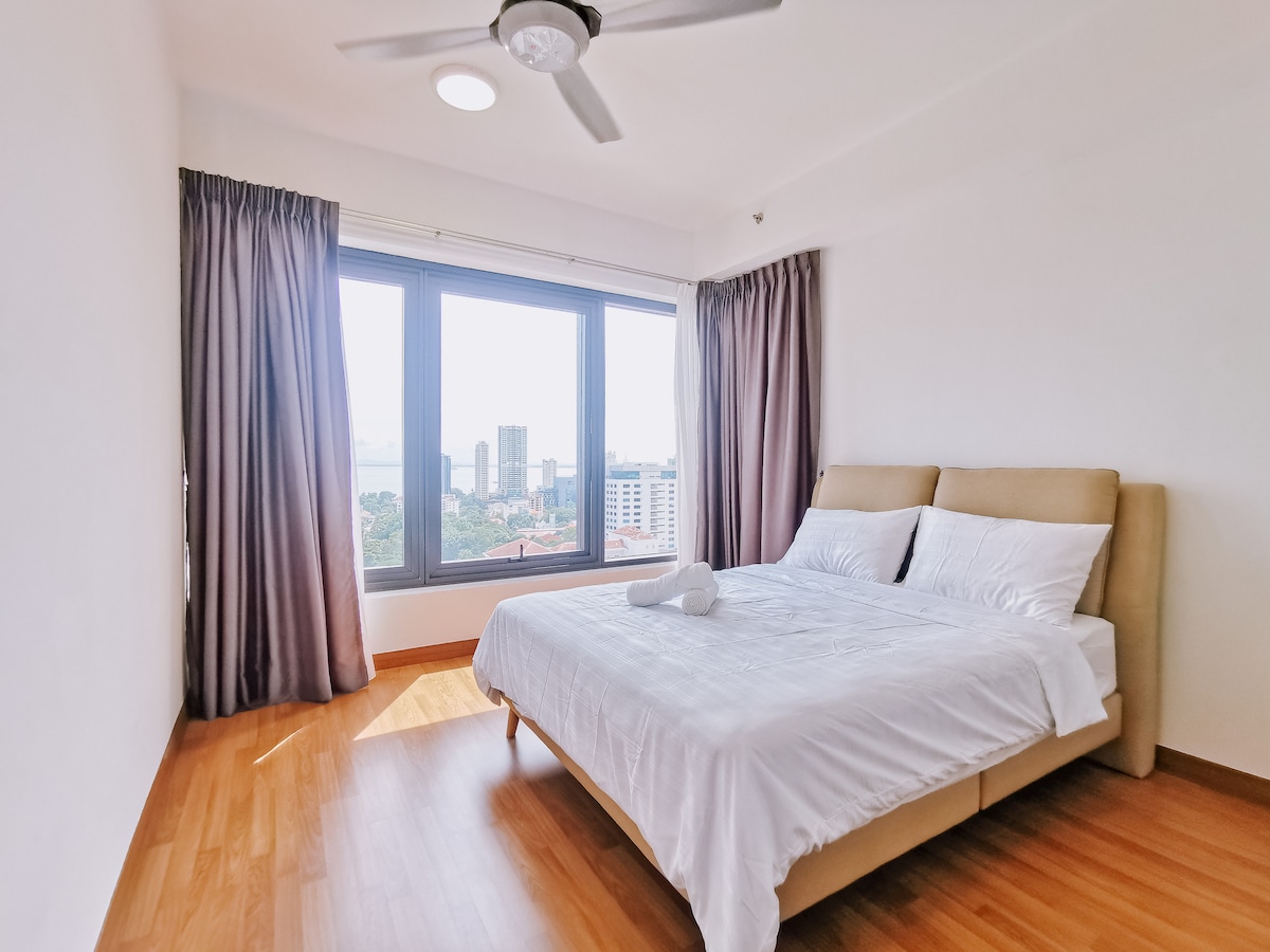 * 월간 공과금 한도는 월 RM600입니다. * 서양 및 동양 혼합 디자인 * 로터스와 스토니 허스트까지 도보 3분 (바로 맞은편) * 고속 와이파이 * 거니까지 5분, 조지타운과 글렌이글스까지 10분 * 웅장한 바다 전망 * 욕실이 딸린 침실 2개 * 마스터 스위트의 고전적인 온수 욕조 * 세탁기, 기능성 주방 시설 * 침구, 세면도구, 수건 제공 * 다국적 TV 채널 및 영화 무제한 * 다리미 및 다리미판 * 실내 주차장 1개, 24시간 보안