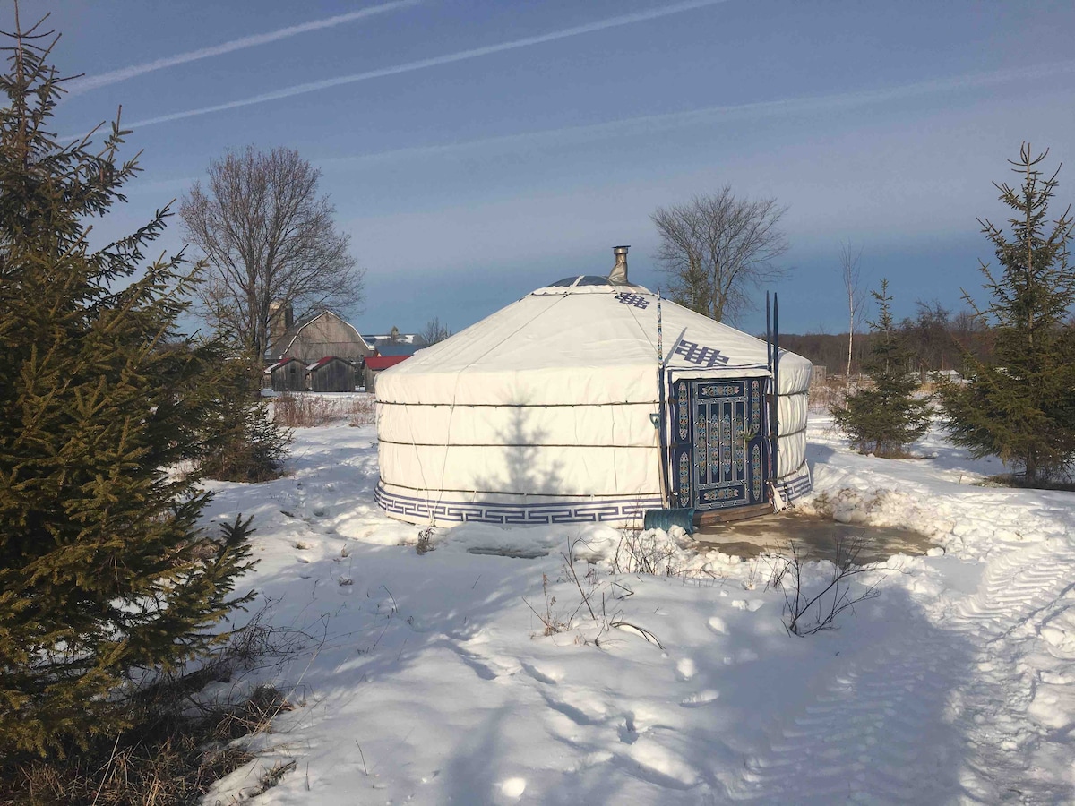 The yurt is located on our 200 acre biodynamic farm in beautiful West Grey. Guest are welcome to walk around the property and enjoy being in nature. A cozy insulated space available all year round. This accommodation is rustic with newly constructed washroom facilities near by. A Farm experience is also available. Snowshoeing or skiing trails are nearby or on the farm. Spa (hot tub and sauna) is available for private booking for 2 people for a $125 extra fee