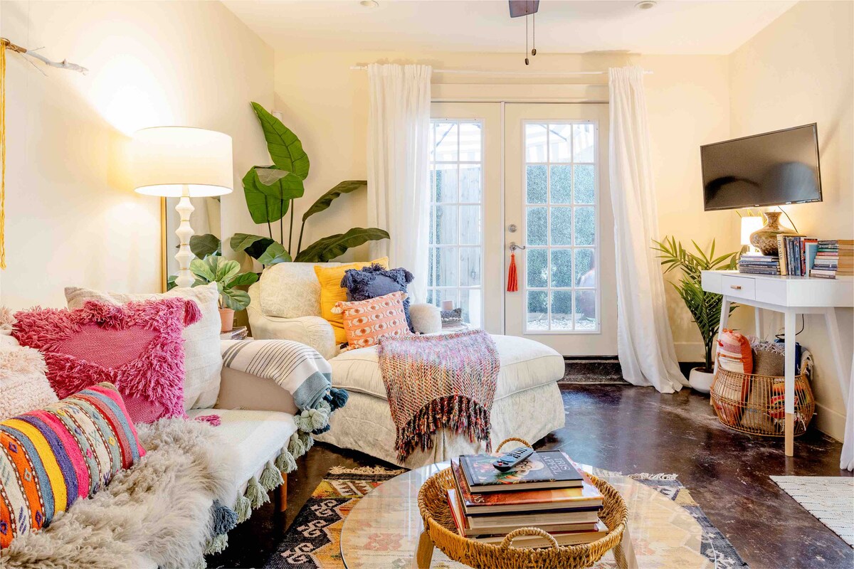휴스턴의 독특한 상점과 레스토랑을 둘러보거나 버팔로 바이유의 하이킹과 자전거 도로를 즐겨보세요! 몬트로즈, 뮤지엄 디스트릭트, 휴스턴의 세계적인 의료 센터 사이에 완벽하게 자리 잡은 공간입니다. 웨스트모어랜드 역사지구에 위치한 2층 아티스트 스페이스의 야외 라운지 공간에서 파파산 그네에 앉아 휴식을 취해보세요. 풍부한 화분, 세련된 벽면 예술, 분홍색 임스 식탁 의자가 절충적인 휴식을 선사합니다. 미드타운과 다운타운에서도 가깝습니다! 사랑스러운 야외 라운지 공간, 의자 그네, 편안한 해먹. 추가 편의 시설로는 완비된 주방, 로쿠, 간식, 목욕 가운, 게임, 책, 세탁 비누, 퓨어스팀 옷 스티머, 좋은 분위기가 있습니다.♥️ 제가 가지고 있는 많은 야외 공간을 즐기세요. 제 예술 벽에 벽화를 추가해 보세요. 저는 숙소 부지 내 메인 하우스에 살고 있습니다. 기꺼이 질문에 답하거나 제안을 드리겠습니다. 필요하시면 언제든지 도와드리겠습니다! 이 동네는 하우스턴 최초의 시내 인근 교외의 역사를 알리기 위해 도보 투어를 자주 개최합니다. 도보로 5분 거리에 레스토랑, 카페, 커피숍, 베이커리가 많은 도보 거리에 있습니다. 몇 블록 떨어진 곳에 철도 접근, 한 블록 떨어진 곳에 있는 버스 정류장에서 b-cycle(휴스턴 시티 자전거)을 대여하거나, 우버를 이용하세요... 2층 주택