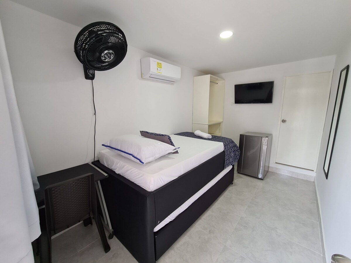 Casa Ramona # 1 - casaramonactg 전용 욕실이 있는 카르타헤나 데 인디아스의 만과 바다의 멋진 전망을 자랑하는 고급스럽고 아늑한 객실입니다. 퀸사이즈 침대, TV, 넷플릭스, 미니 냉장고, 수건 등이 구비되어 있습니다. 자동차로 시내에서 6분, 게메마니에서 5분, 공항에서 15분, 보카그란데에서 10분 거리에 있습니다. 만과 보행자 산책로를 마주하고 있는 도시에서 가장 안전하고 좋은 동네 중 하나에 위치하고 있습니다. 근처에 레스토랑, 슈퍼마켓, 약국이 있습니다.