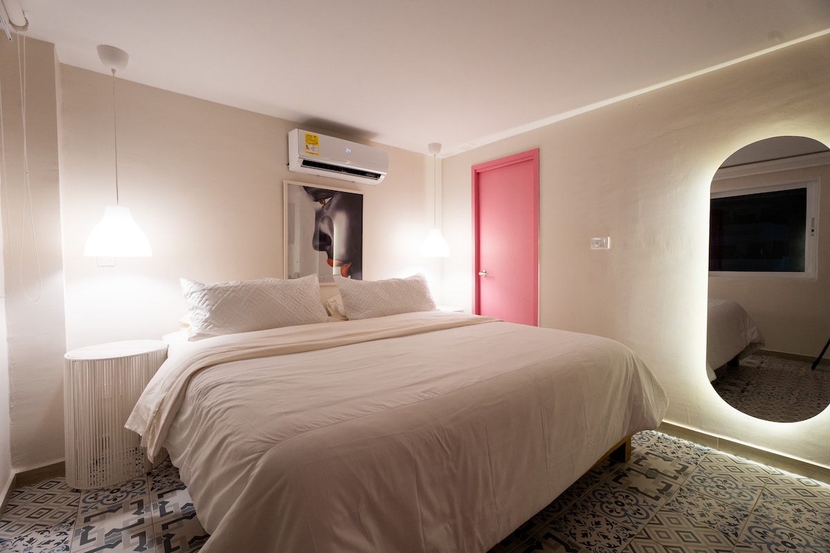 ๋ญ์ ๋ฆฌ ํธํ ๋ด๋ถ์ ํ๋์ ์ธ ์นจ์ค 1๊ฐ ์ํํธ