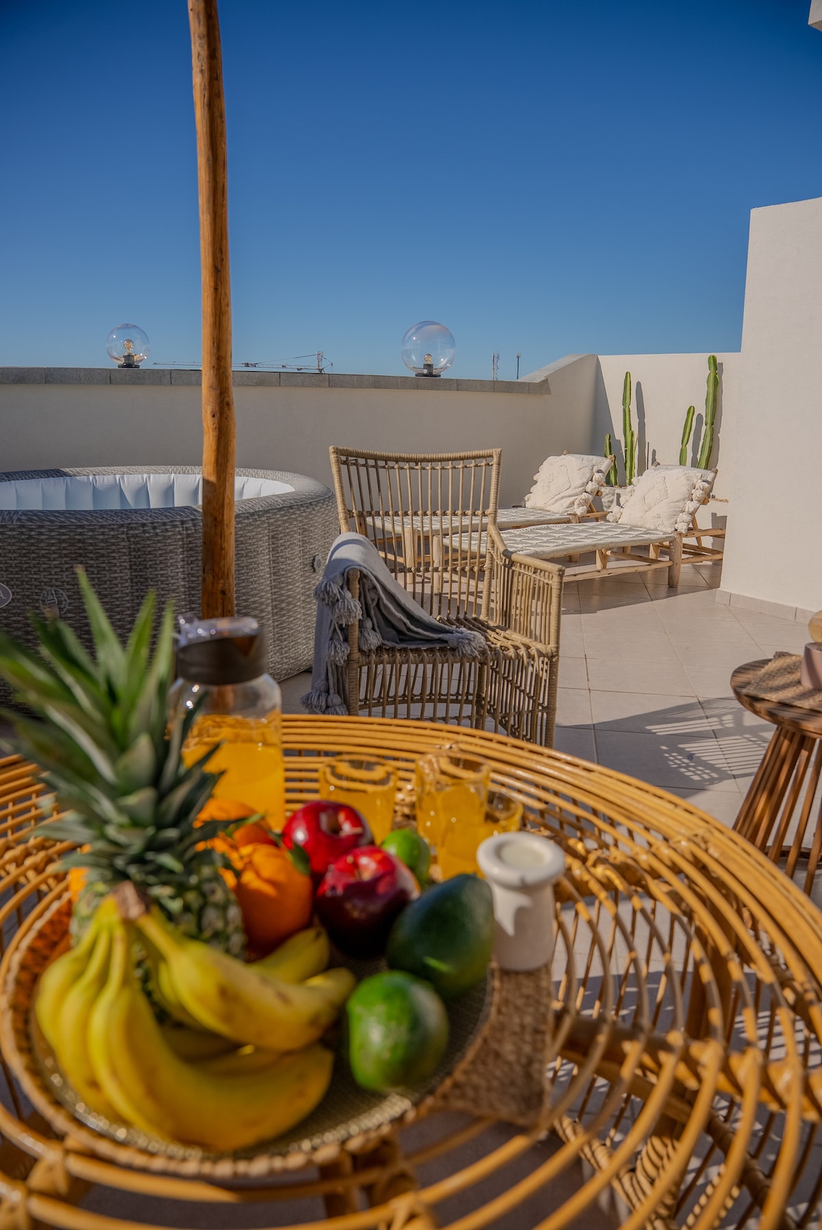 라 카사 과파의 꼭대기에 있는 대형 전용 마법의 옥상에 있는 독특하고 밝은 스튜디오. 킹사이즈 침대가 있는 아늑한 침실, 욕실, 퍼걸러 아래 나무 야외 주방, 메디나와 바다 전망. 2인용 휴양지로 이상적이며, 조용하고, 마법 같고 독특한 장소에서 밝은 빛을 즐길 수 있습니다. 식사 공간, 데크 체어, 와이파이. 해변에서 10분도 안 되는 거리, 메디나에서 20분 거리에 있는 정통적이고 활기찬 동네에 있습니다. 요청 시 서비스: 교통편, 마사지, 액티비티...
