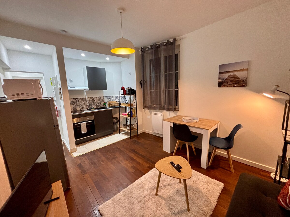 ์ง์ ์๋ด ์ค์ฌ๋ถ์ ์์นํ ์ฐ์ํ ์์๋ฅผ ์ฆ๊ฒจ๋ณด์ธ์. - ์์ ํ ๋ฆฌ๋ชจ๋ธ๋งํ 20m2 ์คํ๋์ค: - ๊ฑฐ์ค, TV, ์ ์ด์ ํ์, ์ํ ๋๋ ์ฑ ์, 2์ธ์ฉ ์ํ๊ฐ ์์ต๋๋ค. - ์ท์ฅ์ด ์๋ 140 x 190 ๋๋ธ ์นจ๋๊ฐ ์๋ ์นจ์ค. - ์์ค - ๊ฐ์ค๋ ์ธ์ง 2๊ตฌ, ์ค๋ธ, ์ ์๋ ์ธ์ง, ํ๋, ๋์ฅ๊ณ , ์ปคํผ ๋ฉ์ด์ปค, ์ฃผ์ ์ ๋ฑ ์์ค์ด ์๋น๋ ์ฃผ๋ฐฉ) ๋ฃจ์๋ฅด ๊ฐ์ ์ ๋ง - ๊ฑฐ๋ฆฌ์ ๋ฌด๋ฃ ์ฃผ์ฐจ - ์ด๊ณ ์ ์์ดํ์ด