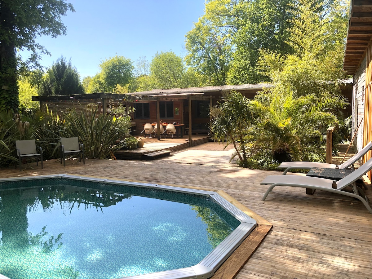 Appartement 1รจre ligne Bassin d'Arcachon, entre mer et forรชt. Les Jacquets presqu'รฎle du Cap-Ferret. Au 1er รฉtage d'une maison en bois de 2013, sur chemin privรฉ. Accรจs direct ร la plage. Climatisรฉ tout confort 60 mยฒ. 1 chambre lit Queen-size matelas latex naturel, salle d'eau, toilettes, buanderie lave-linge, รฉquipement BB, sรจche-linge, grand sรฉjour-salon-cuisine avec 1 lit-armoire Queen-size. Cuisine รฉquipรฉe four รฉlectrique, plaque induction, micro-ondes, lave-vaisselle rรฉfrigรฉrateur. TNT WIFI.