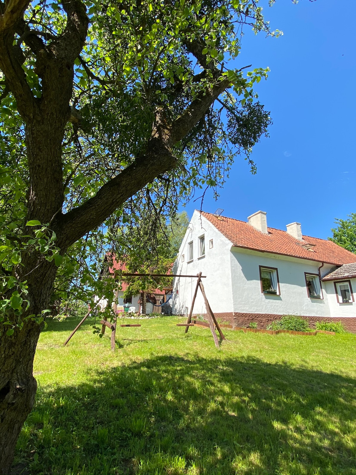 평화로운 위드미니에서 녹지로 둘러싸인 작은 집에서 느긋하게 휴식을 취해보세요. 이곳에서 진정한 느린 삶을 경험하고 북적거리는 지역에서 벗어나 휴식을 취할 수 있습니다. 길을 건너면 호수에 도착하며, 해변은 5분 거리에 있습니다. 조용한 곳, 자전거 타기, 숲속 산책, 낚시를 즐기신다면 이곳이 마음에 드실 겁니다. 녹색 숙소에는 공작, 꿩, 다양한 품종의 닭과 수탉이 있습니다. 목가적인 시골 생활의 개념을 받아들입니다. 휴식 보장!
