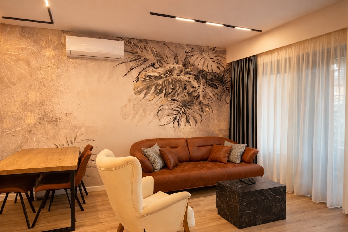 파리 스타일과 현대적인 럭셔리함이 만나는 세련되고 예술적인 세계로 초대합니다. 세련된 몰딩, 우아한 가구, 천연 식물로 장식된 이 아파트는 우아함과 매력의 안식처입니다. 숲을 테마로 한 벽화의 아름다움에 푹 빠져보세요. 공간에 마법 같은 느낌을 더해줍니다. 아늑한 좌석 공간에서 책을 읽거나 발코니에서 와인 한 잔을 즐기는 모든 순간이 세련미와 우아함을 품고 있습니다.