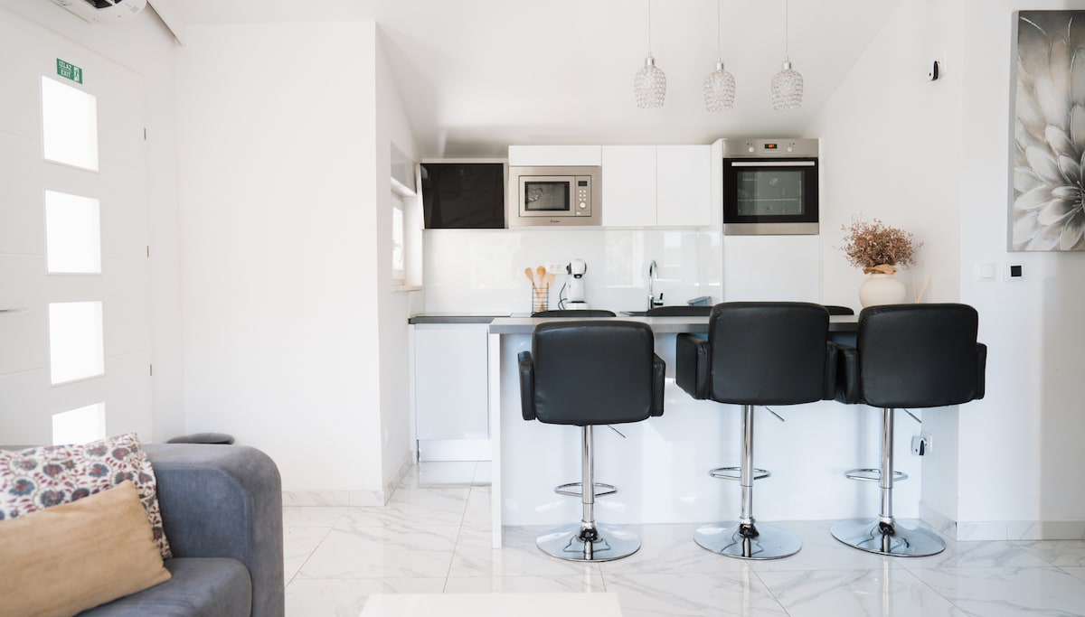๋น๋ผ ๋ธ๋ฃจ ์ค์นด์ด๋ ์ ๋ช ํ ํ์ดํธ ๋ธ๋ผ์น ๋๋ฆฌ์์ ์ฌ์ฉํ์ฌ ์ง์ ๋งค๋ ฅ์ ์ธ ์์กฐ ์ฃผํ์ ๋๋ค. ํํ๋ก์ด ์ฌ๋ฆฌ๋ธ ์ ์์ ์๋ฆฌํ ๋ ๊ฐ์ ์์์ฅ์ ํ๋ผ์ด๋ฒ์๋ฅผ ์ ๊ณตํ๋ฉฐ, ๋ณผ(300m) ๋์ฌ, ์๋ฃํ์ , ์์ฐ์์ฅ, ์ฝ๊ตญ์ด ๋๋ณด๋ก ๋จ ๋ช ๋ถ ๊ฑฐ๋ฆฌ์ ์์ต๋๋ค. ๋น๋ผ์์๋ ๋ฉ์ง ๋ฐ๋ค ์ ๋ง์ ๊ฐ์ํ ์ ์์ต๋๋ค. ์ ํต์ ์ธ ๋ฌ๋ง์์ ์คํ์ผ๋ก ์๋ก ์ง์ด์ง ํ๋์ ์ธ ์ธํ ๋ฆฌ์ด์๋ ์๋ฒฝํ ์๋ฐ์ ์ํ ๋ชจ๋ ๊ฐ์ ์ ํ๊ณผ ํธ์์์ค์ด ๊ตฌ๋น๋์ด ์์ต๋๋ค. ํฌ๋ก์ํฐ์์์ ๊ฐ์ฅ ์ธ๊ธฐ ์๋ ํด๋ณ์ธ ์ฆ๋ผํธ๋ ๋ซ์ ๋ถ๊ณผ 1500m ๊ฑฐ๋ฆฌ์ ์์ต๋๋ค.