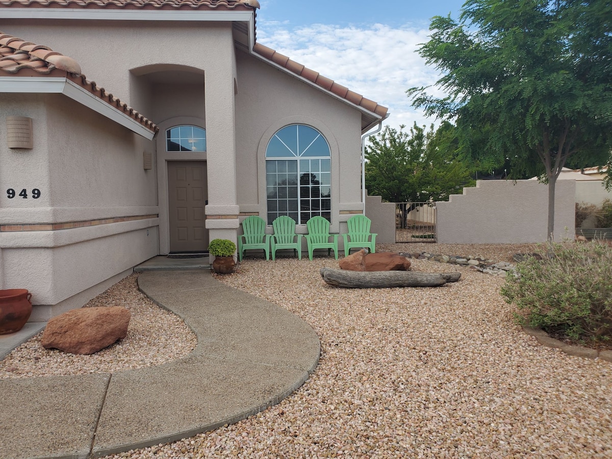 💜작가에서 영감을 받은 게스트 스위트에서 아침 비둘기 소리에 깨어나세요. 작고 아늑하며 평화롭고 안전한 가족 동네입니다. ❤️전용 출입구 🧡전용 뒷마당, 데크, 비스트로 💛마스터 BR 퀸사이즈 침대 💚전용 욕실 🩵미니 전자레인지, 미니 냉장고, 큐리그/커피/차/주방 없음 💙1마일-레스토랑 - 도보로 15분 정도면 마을의 레스토랑과 상점으로 쉽게 이동할 수 있습니다. 💜림 트레일 하이킹으로 멋진 전망을 즐기세요(도보 1마일) 💛4.8km - 호스슈 벤드 🧡7마일 - 앤텔로프 캐년