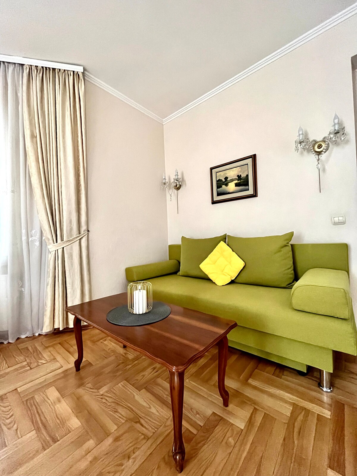 The apartment is located in the historical building of the city center. Its perfect for travelers who want to be in the middle of the city's events and who likes sightseeing. Guests who are going on the business trip will be comfortable there too. Lots of pubs, restaurants and different type of shops are nearby. There is everything you need for a comfort stay in the apartment .