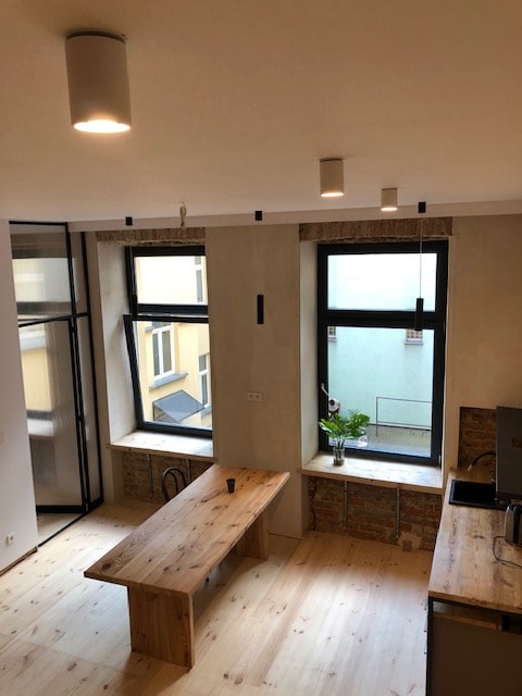 Klimatyczny niewielki apartament położony na obrzeżach Starego Miasta, w kilkusetletniej kamienicy. Bezpośrednie sąsiedztwo Bramy Trynitarskiej, katedy, Domu Słów. Wykończony z dbałością o detale, nawiązujący do stylistyli loftowej i historii miejsca. Usytułowany przy zamkniętej dla ruchu samochodowego części ulicy Żmigród. Daje moliwość przenocowania czterech osób; materac dwuosobowy na atresoli, na dole rozkładana sofa. Parking miejski lub prywatny 300m dalej (konieczna rezerwacja)