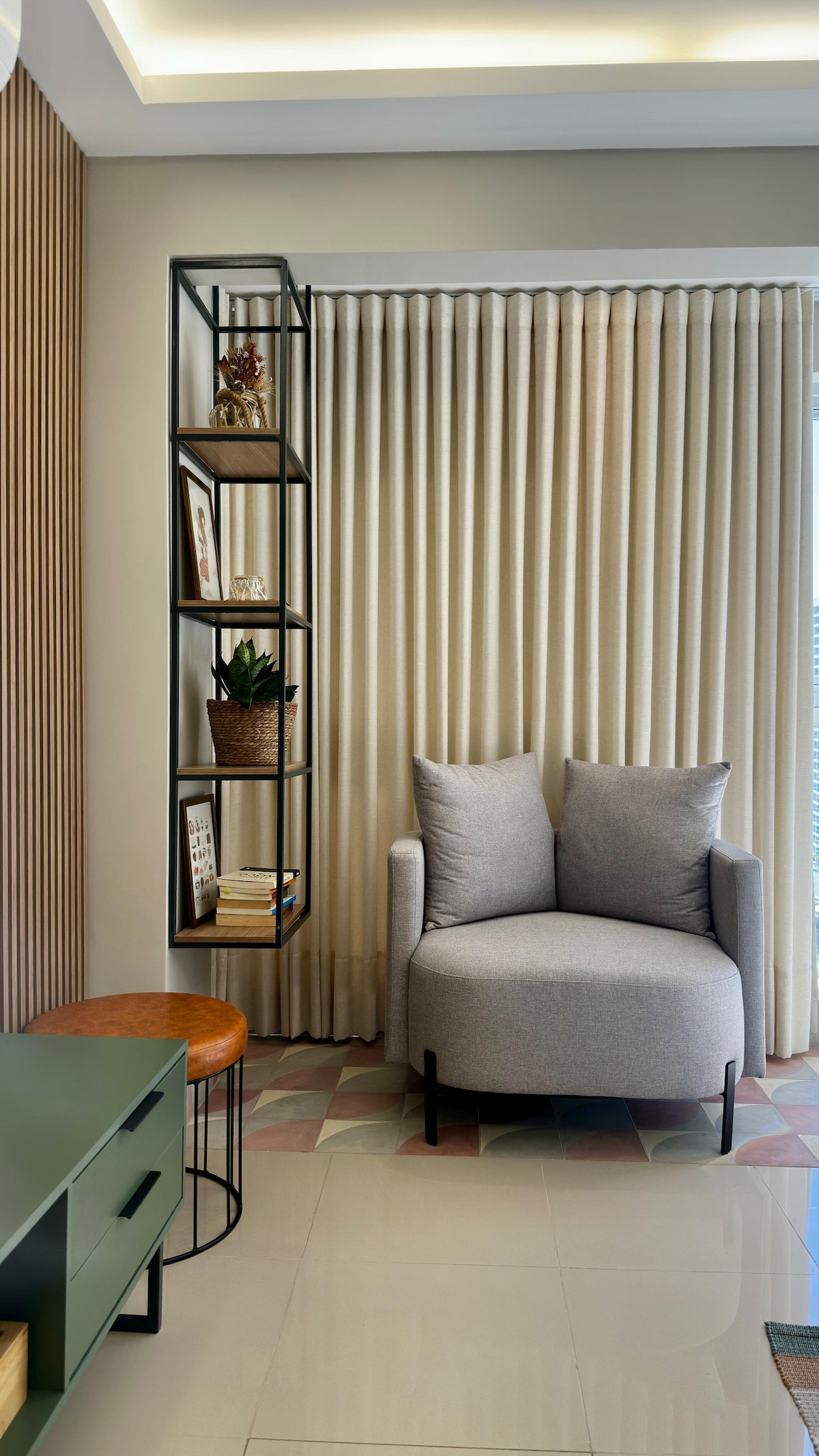 O Flat tem arquitetura assinada por um dos profissionais mais renomados de Goiânia. A idéia é você poder se sentir em casa durante a sua hospedagem. Tudo automatizado; luzes, cortina, TV, Ar Condicionado que oferecem comodidade e requinte, basta pedir para Alexa. Escute músicas, assista a mais de 1.600 canais abertos e fechados. Tome um banho gostoso com uma ducha generosa. Faça fotos e descanse na varanda com uma vista do por do sol sensacional e teto de acrílico.