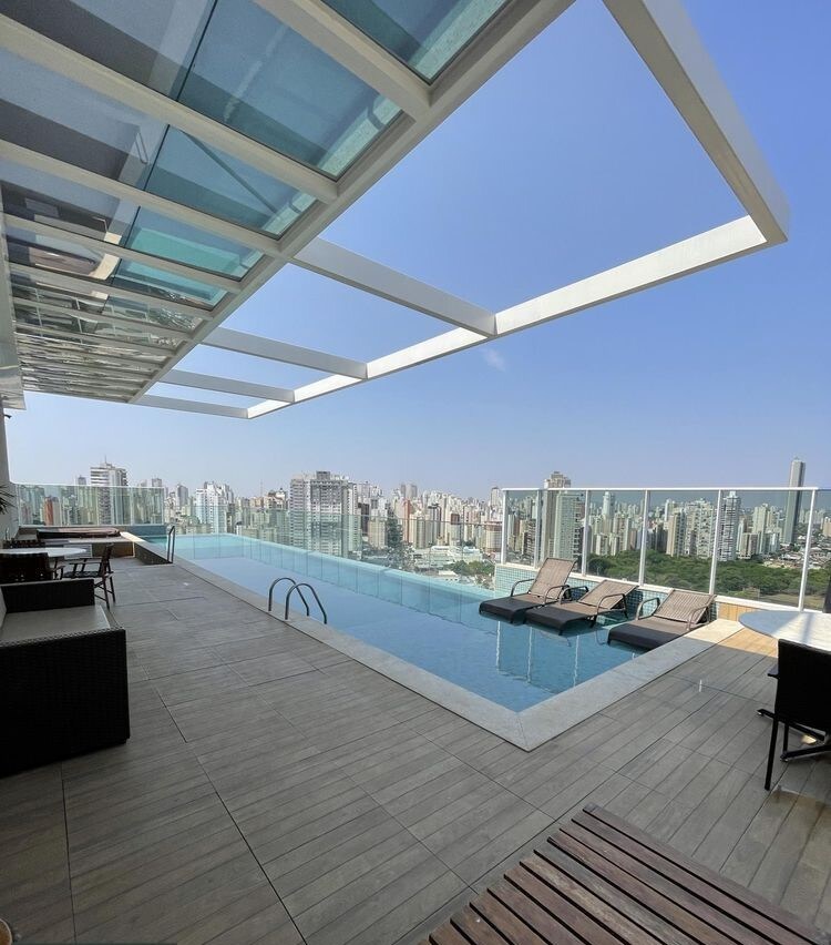 Excelente localização, com uma vista maravilhosa da cidade, lugar bem decorado, moderno e aconchegante. Esse apto de 1 quarto vai te oferecer uma estadia completa. Localizado no Jd. Goiás, está a 100 metros do Parque Flamboyant (o mais bonito da cidade), a 1 km do Shopping Flamboyant, em frente ao estádio Serra Dourada, próximo da prefeitura de Goiânia, Assembleia Legislativa, Fórum e de diversos pontos de entretenimento, como bares, restaurantes, quadras de tênis, de areia.