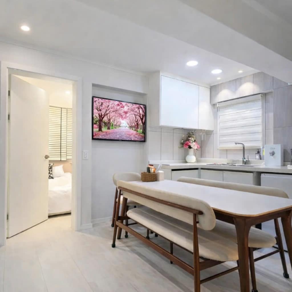 โํ์ด(่ฑ้ป)โ์ ๊ฝ์ด ์ง๋ ์ด์น์ ์ธ๋ฆผ์ ๋ด์ ํ์ฅ ์คํ ์ด์ ๋๋ค. ์ ์ ํผ์๋ค ์ฌ๋ผ์ง๋ ๊ฝ์ฒ๋ผ, ์๊ฐ์ ์๋ฆ๋ค์์ด ์ค๋ ๋จ๋ ์ฌ์ด์ ๊ณต๊ฐ์ ๋ด์๋์ต๋๋ค. ์ผ์ฒญ๋์ ์กฐ์ฉํ ๊ณจ๋ชฉ์ ์๋ฆฌํ ํ๋ผ์ด๋น ํ์ฅ โํ์ดโ์ ๋ถ์ ์ฐ๊ณผ ์ธ์์ฐ, ์ฒญ์๋์ ์ผ์ฒญ๋๊ธธ๊น์ง ํ๋์ ๋ด๊ธฐ๋ ํ ํธ์ธ ์ ๋ง์ ์๋ํฉ๋๋ค. ์ฐฝ ๋๋จธ๋ก ์์ธ์ ์์ฐ๊ณผ ๋์๊ฐ ์ด์ฐ๋ฌ์ง ํ๊ฒฝ์ ๊ฐ์ํ๋ฉฐ ๊น์ ํด์์ ๊ฒฝํํด๋ณด์ธ์. ์์๋ ๋ง๋น๊ณผ ์์ฟ ์ง๋ฅผ ํฌํจํ ๋ ์ฑ ์ ์ฒด๋ฅผ ๋จ๋ ์ผ๋ก ์ด์ฉํ ์ ์์ผ๋ฉฐ, ๊ฐ๊ฐ์ ์ธ ์ธํ ๋ฆฌ์ด์ ๋๋ถ์ด ํธ์์ฑ๊น์ง ๊ฐ์ถ ํ๋ฆฌ๋ฏธ์ ๊ณต๊ฐ์ ๋๋ค. - ์์ ์ ๋ณด ๋ถ์ ์ฐ๊ณผ ์ธ์์ฐ, ์ผ์ฒญ๋๊ธธ ์กฐ๋ง ๊ฐ๋ฅ ํ๋ผ์ด๋น ์ค์ธ ์์ฟ ์ง ์ด์ฉ ๊ฐ๋ฅ ๋นํ๋ก์ ํฐ ๊ตฌ๋น (๋ทํ๋ฆญ์ค, ์ ํ๋ธ ๋ฑ ์์ฒญ ๊ฐ๋ฅ) ์ธํ๊ธฐ ๋ฐ ๊ฑด์กฐ๋ ์ ๊ณต ์กฐ์ฉํ ์ฃผ๊ฑฐ์ง๋ก ํํฐ ๋ฐ ์์ฃผ๊ฐ๋ฌด ๋ถ๊ฐ ์ฃผ์ฐจ ๋ถ๊ฐ (์ธ๊ทผ ์ ๋ฃ์ฃผ์ฐจ์ฅ ๋๋ ๋ชจ๋์์ฃผ์ฐจ์ฅ ์ฑ ์ด์ฉ ๊ถ์ฅ)