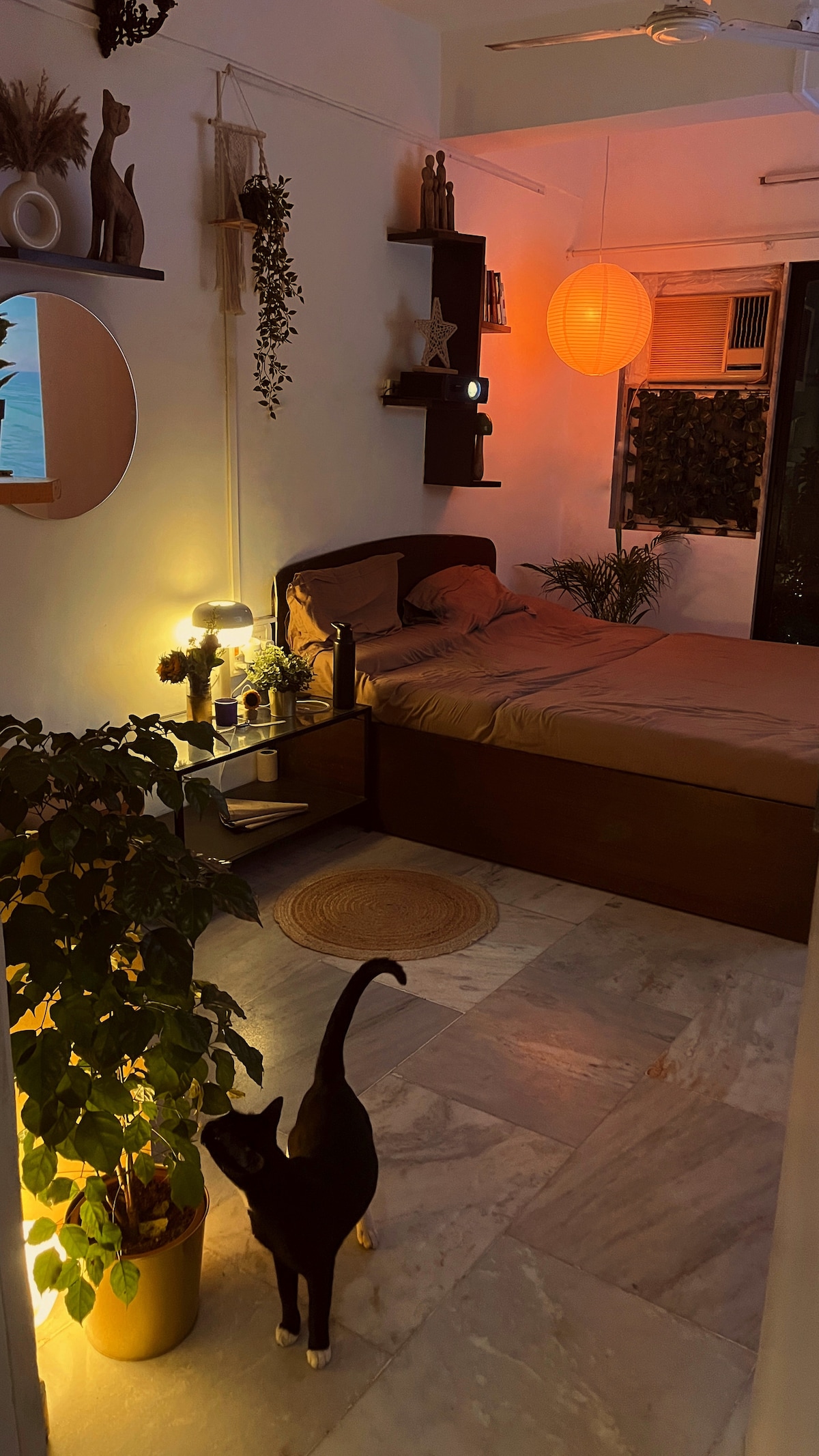 SunainaStays는 뭄바이 반드라의 중심부에 위치한 부티크 웰니스 숙소입니다. 신체적, 정신적 건강을 위해 세심하게 설계되어 도시의 스트레스에서 벗어날 수 있는 평화로운 휴식을 제공합니다. 4층에 위치하고 있지만, 탁 트인 바다 전망, 도시의 번잡함에서 벗어난 고요한 정적, 숨 막히는 일몰을 감상할 수 있어 충분히 가치가 있습니다. 독특한 수제 가구와 해안의 매력이 어우러져 휴식을 취하고 재충전하기에 완벽한 공간입니다. 공간에 몸을 맡기세요.