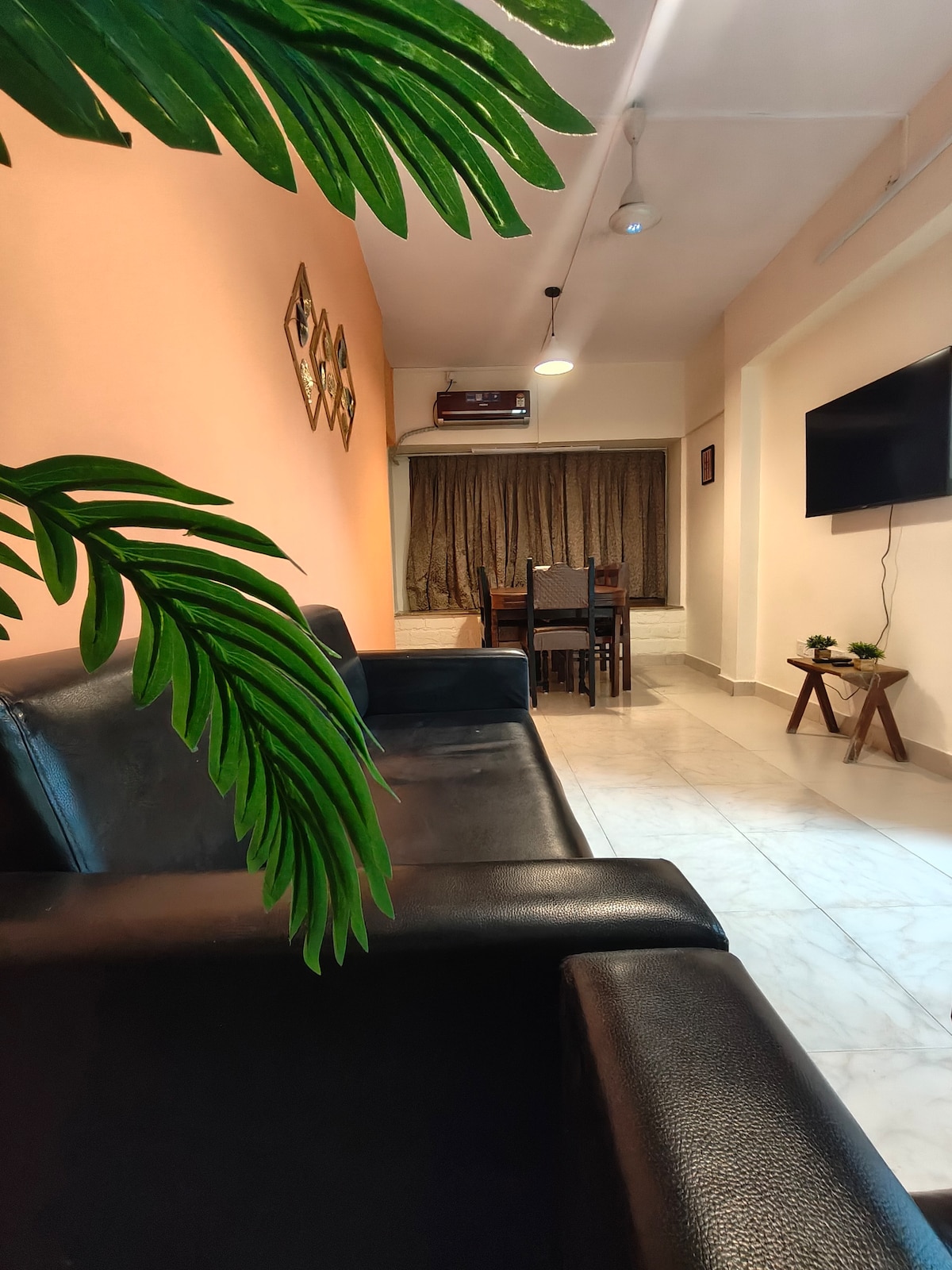 신선한 녹색 인테리어와 세련되고 귀여운 분위기를 자랑하는 새로운 1BHK에 발을 들여놓으세요. 새로 지어진 타워에 위치한 이 숙소는 새로운 이케아 가구, 아늑한 침실, 현대적인 거실 공간, 엔터테인먼트를 위한 TV 2대를 갖추고 있습니다. 도심에 위치해 있어 시내로 쉽게 이동할 수 있으며, 해변이 가까워 휴식을 취하기에도 좋고 출장에도 이상적입니다. 쾌적한 숙박을 위해 밝고 편안하며 세심하게 설계되었습니다. 3, 4번째 게스트가 있는 경우 홀에 소파 겸 침대.