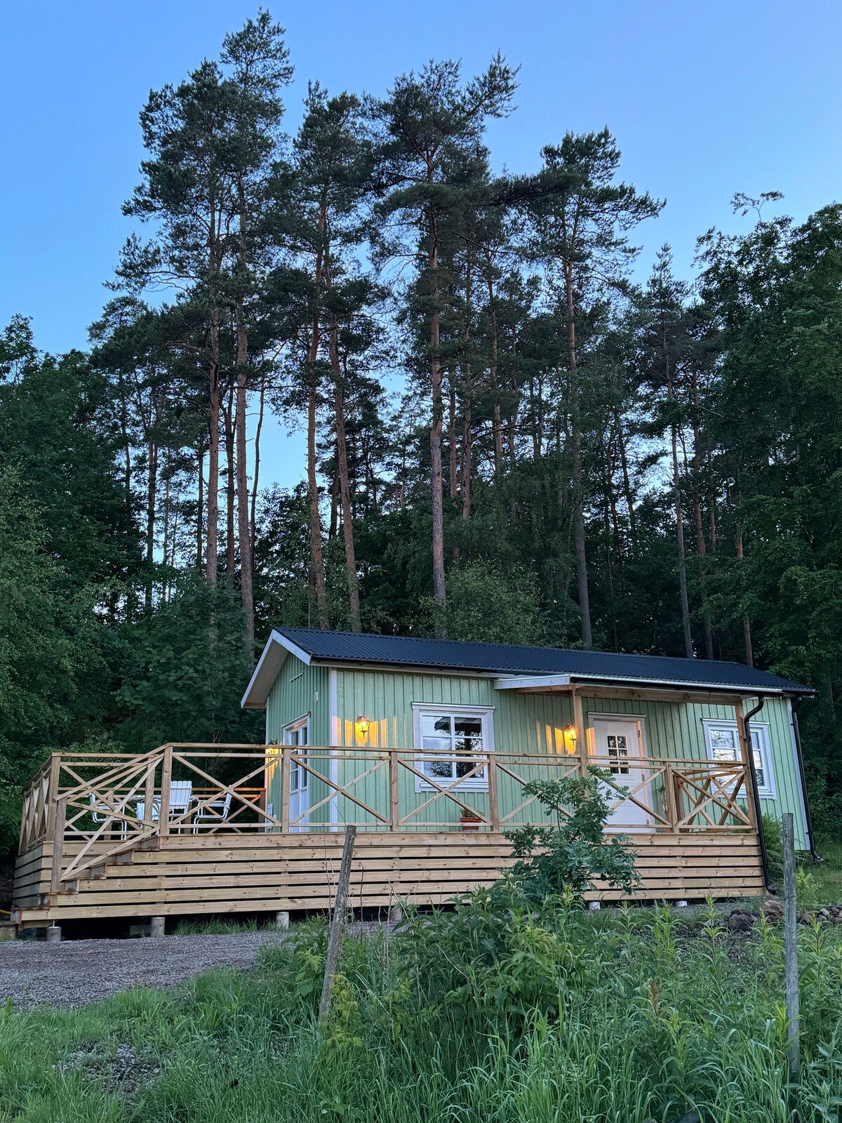 En fantastisk liten stuga med skogen nära.