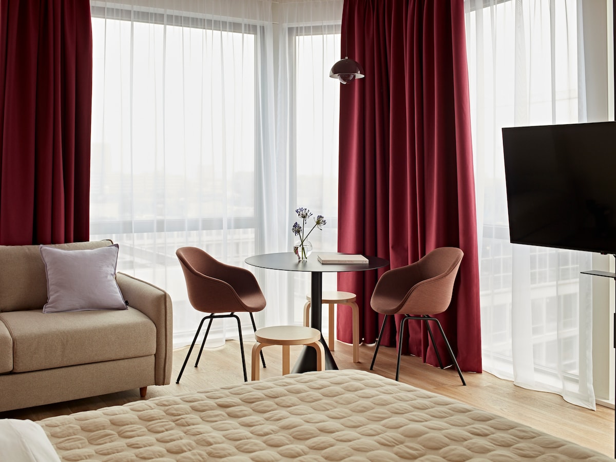 - 37㎡/398㎡의 공간을 갖춘 스튜디오 - 최대 4명까지 이용하기에 적합 - 더블 침대(180x200cm/71x79인치) 및 소파 베드(160x200cm/63x79인치) - 장애인용 샤워실이 있는 현대적인 욕실 - 차와 커피 필수품이 완비된 간이 주방과 식탁 실제 객실은 사진과 다를 수 있습니다.