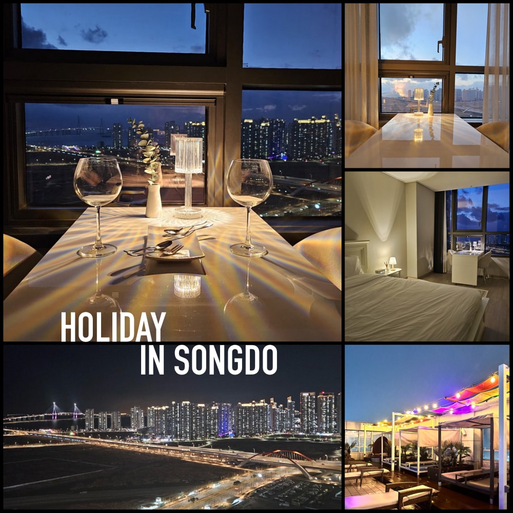 [달빛축제공원역] 송도 4인실#75인치 TV 넷플릭스#뻥뷰 #초고층 야경맛집#대형 욕실